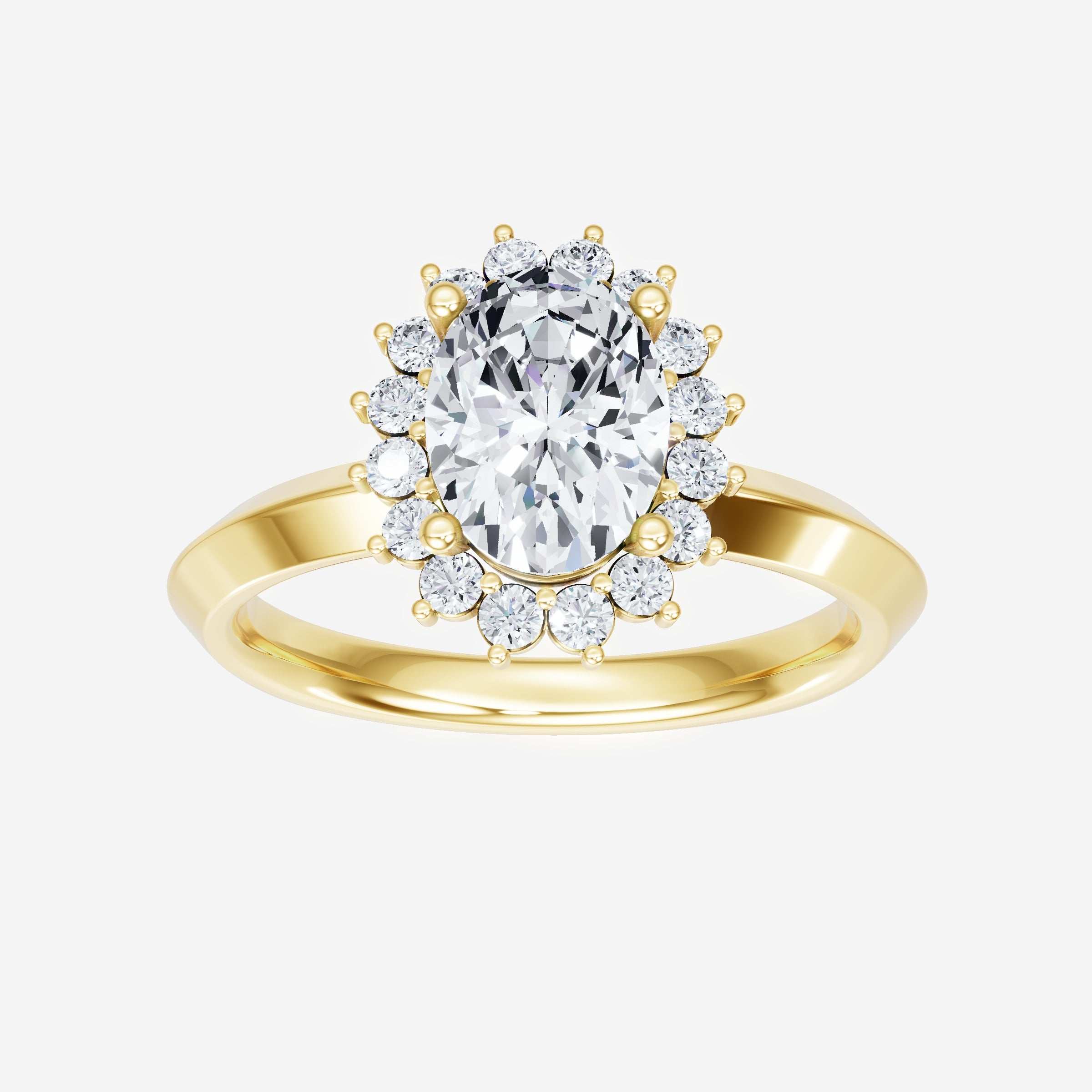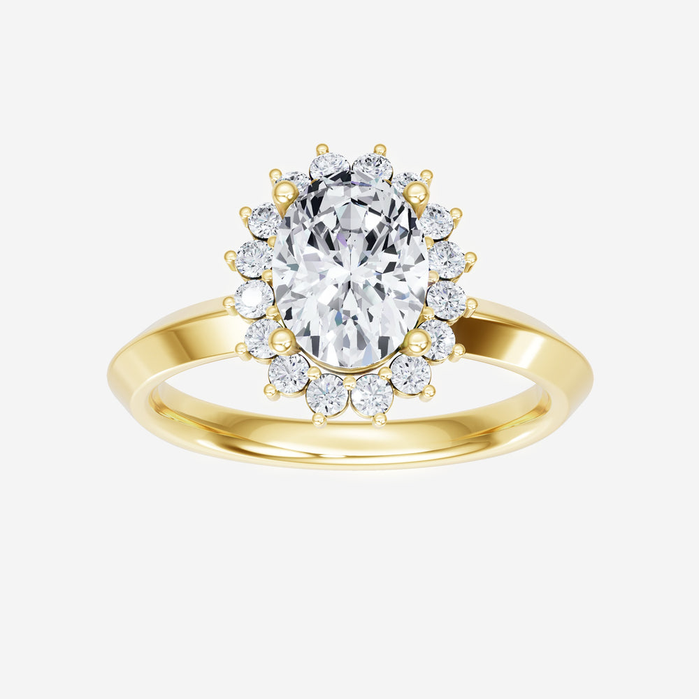 You’ve designed a ring that reflects lasting elegance and grace! Crafted from 14k Yellow Gold, this exquisite Oval lab-grown diamond is the centerpiece of this unique design. This Knife Edge Shank with a Diana Halo head showcases the brilliance of the Oval diamond, creating a timeless look. With this ring, celebrate every moment of joy, success, and love.