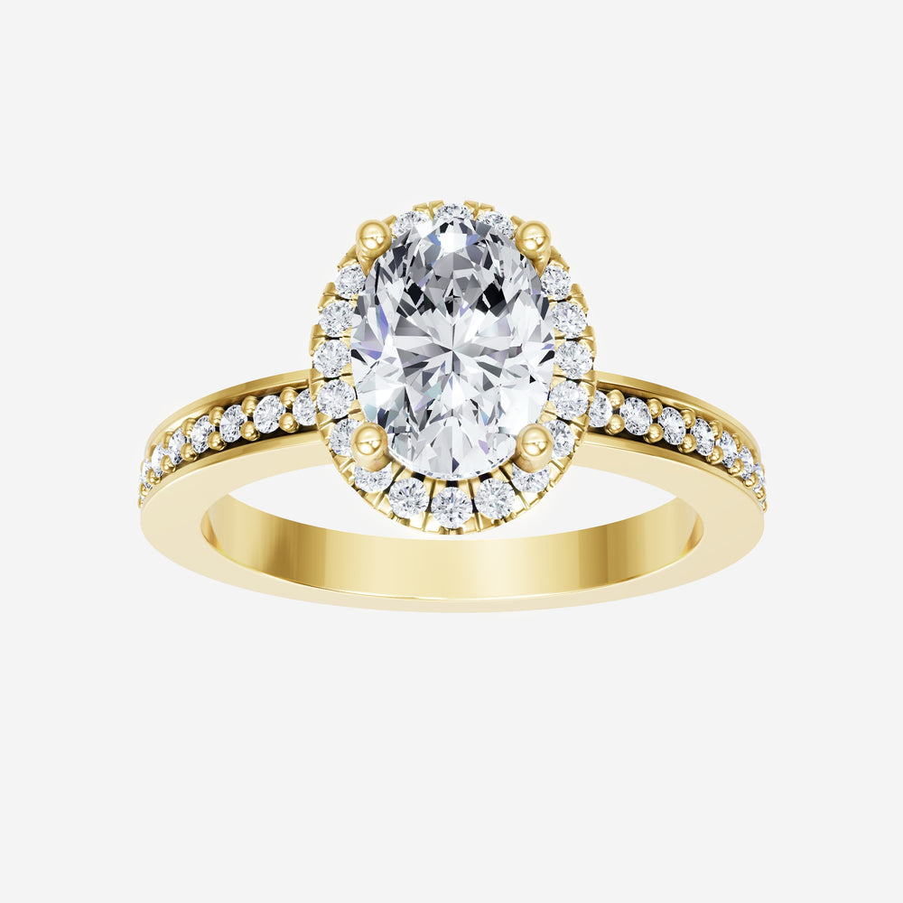 You’ve designed a ring that reflects lasting elegance and grace! Crafted from 14k Yellow Gold, this exquisite Oval lab-grown diamond is the centerpiece of this unique design. This Single Pave Shank with a Micro Halo head showcases the brilliance of the Oval diamond, creating a timeless look. With this ring, celebrate every moment of joy, success, and love.
