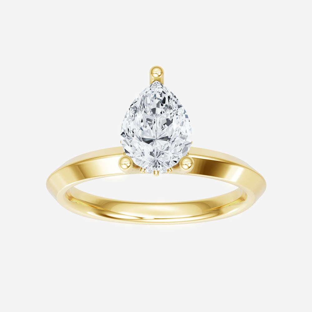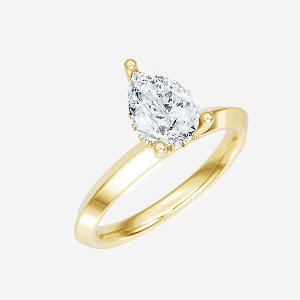You’ve designed a ring that reflects lasting elegance and grace! Crafted from 14k Yellow Gold, this exquisite Pear lab-grown diamond is the centerpiece of this unique design. This Knife Edge Shank with a Hidden Halo head showcases the brilliance of the Pear diamond, creating a timeless look. This stunning ring makes the perfect symbol of everlasting love and devotion.