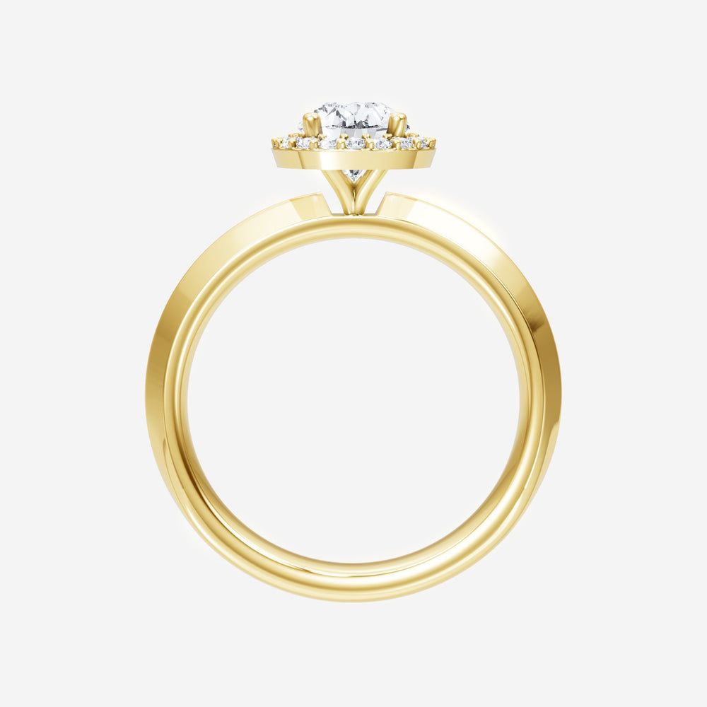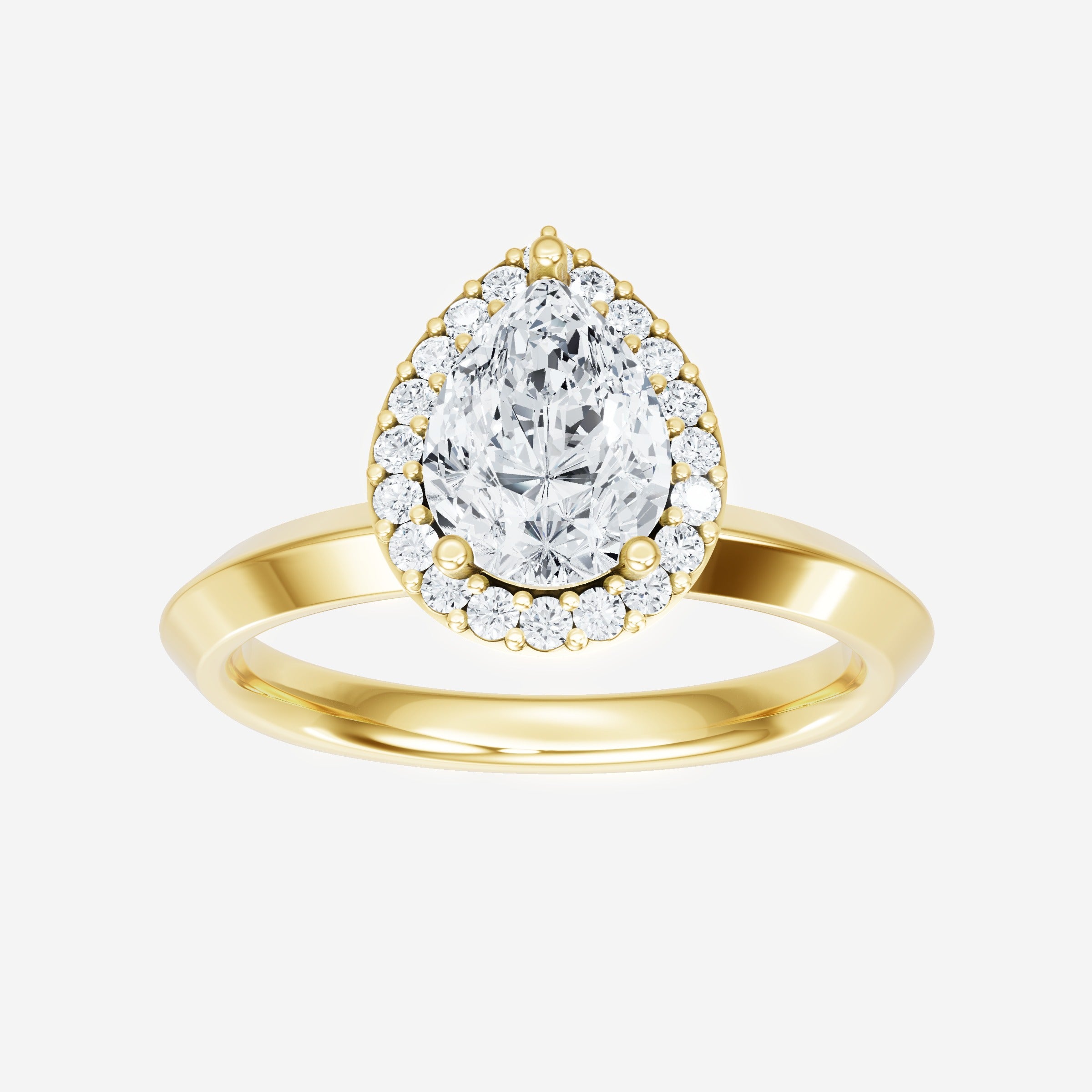 You’ve designed a ring that reflects lasting elegance and grace! Crafted from 14k Yellow Gold, this exquisite Pear lab-grown diamond is the centerpiece of this unique design. This Knife Edge Shank with a Single Halo head showcases the brilliance of the Pear diamond, creating a timeless look. A perfect choice to celebrate love, commitment, and everything in between.