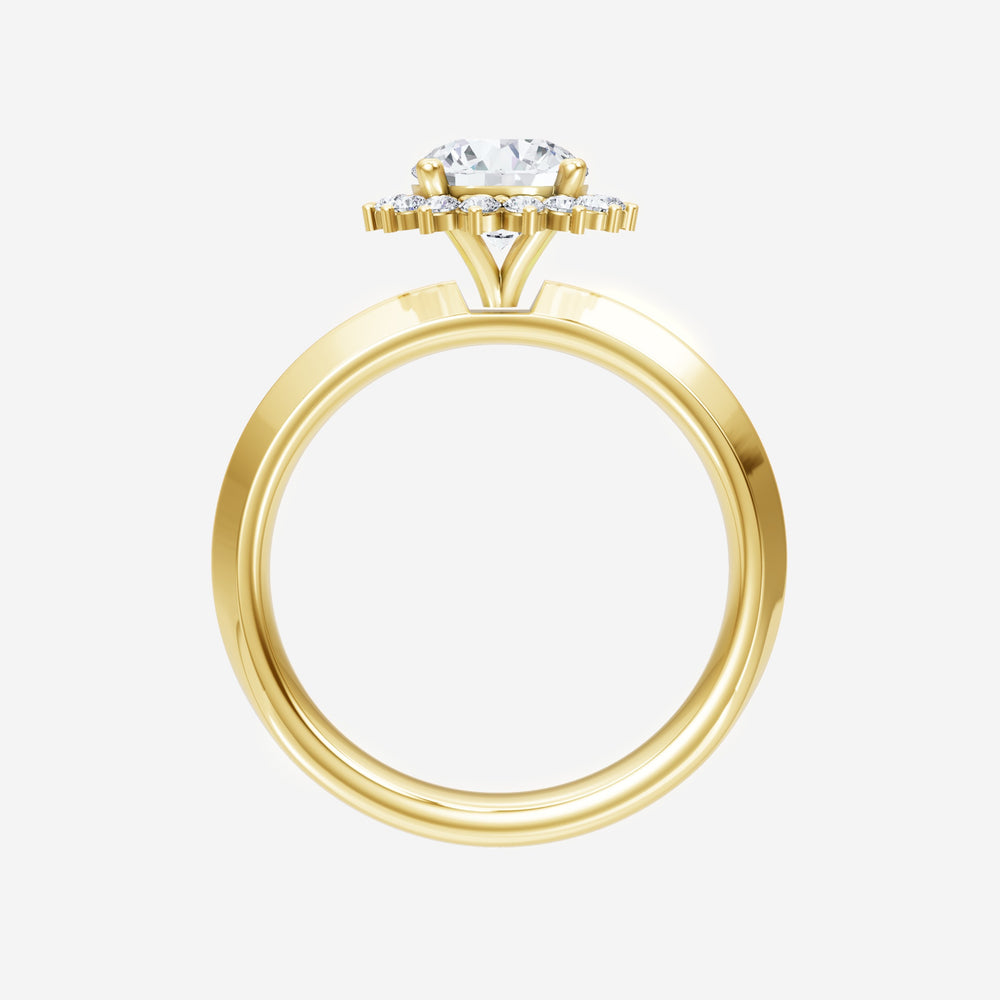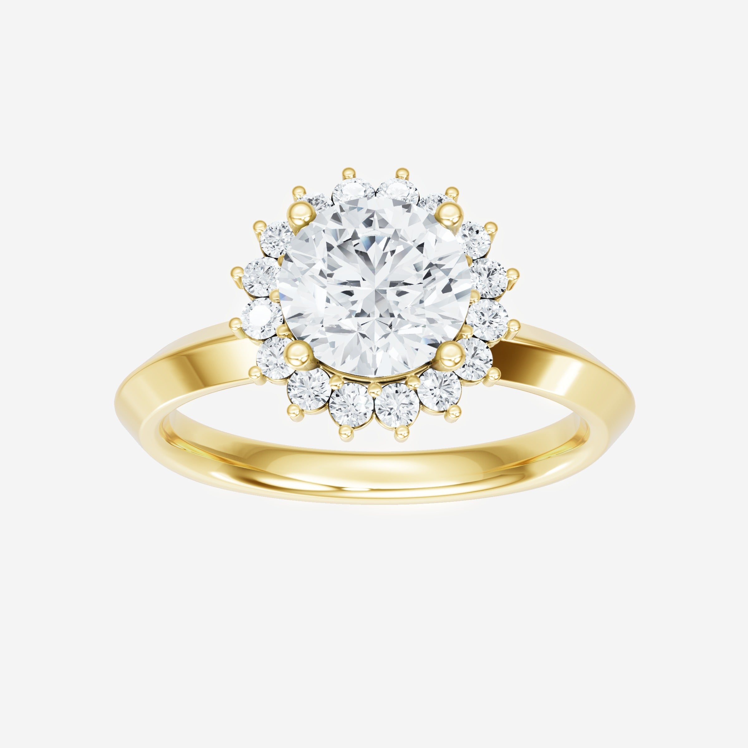 You’ve designed a ring that reflects lasting elegance and grace! Crafted from 14k Yellow Gold, this exquisite Round lab-grown diamond is the centerpiece of this unique design. This Knife Edge Shank with a Diana Halo head showcases the brilliance of the Round diamond, creating a timeless look. It's a piece of elegance and beauty, perfect for marking life's most beautiful occasions.