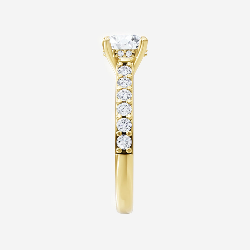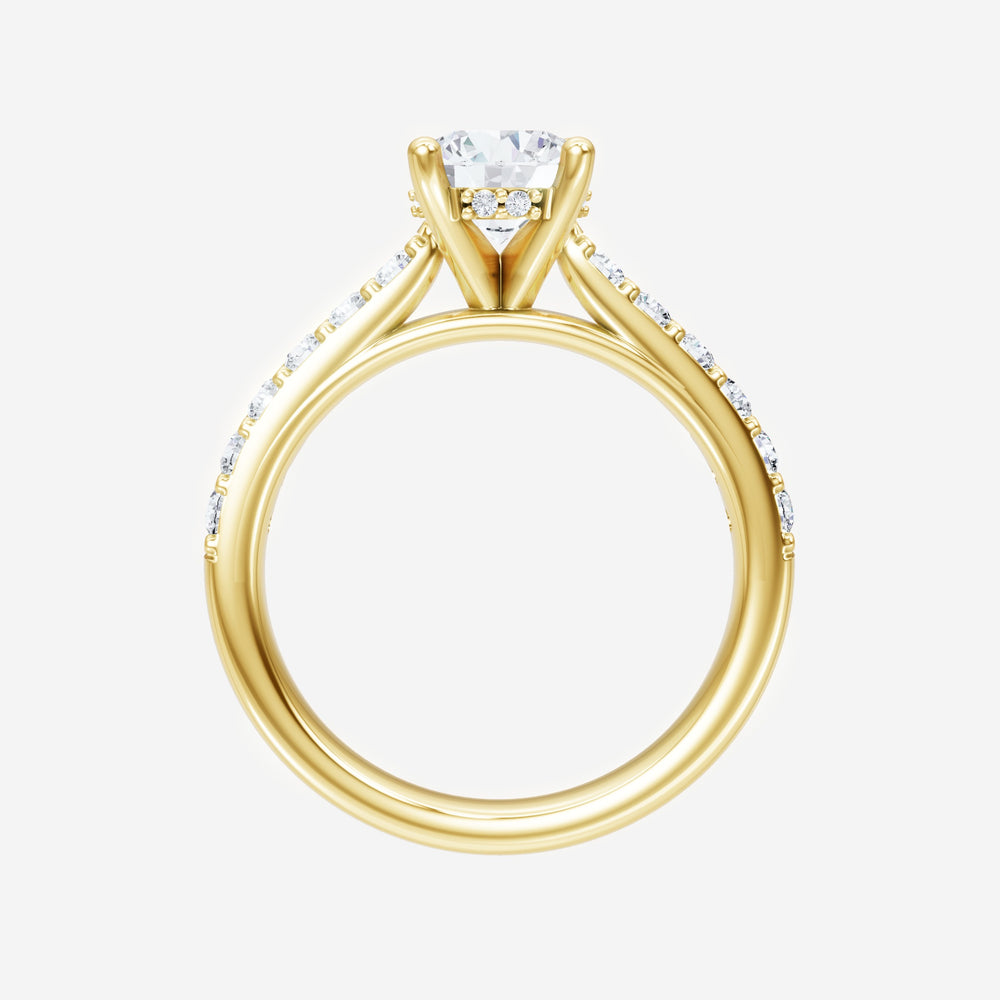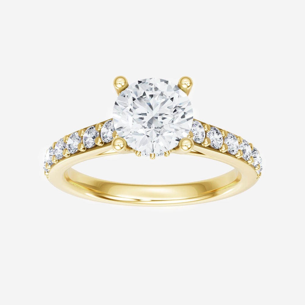You’ve designed a ring that reflects lasting elegance and grace! Crafted from 14k Yellow Gold, this exquisite Round lab-grown diamond is the centerpiece of this unique design. This Cathedral Diamond Shank with a Hidden Halo head showcases the brilliance of the Round diamond, creating a timeless look. With this ring, celebrate every moment of joy, success, and love.