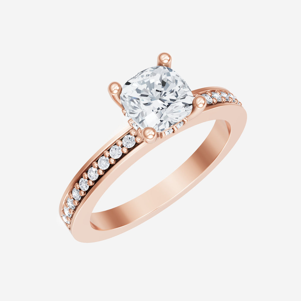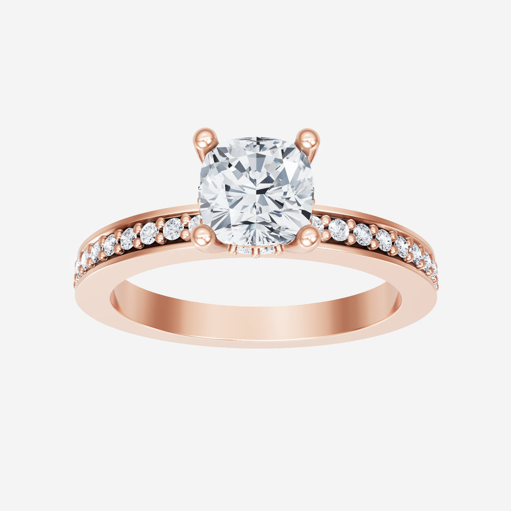 You’ve designed a ring that reflects lasting elegance and grace! Crafted from 18k Rose Gold, this exquisite Cushion lab-grown diamond is the centerpiece of this unique design. This Single Pave Shank with a Hidden Halo head showcases the brilliance of the Cushion diamond, creating a timeless look. This ring will become a cherished reminder of life's most treasured moments.