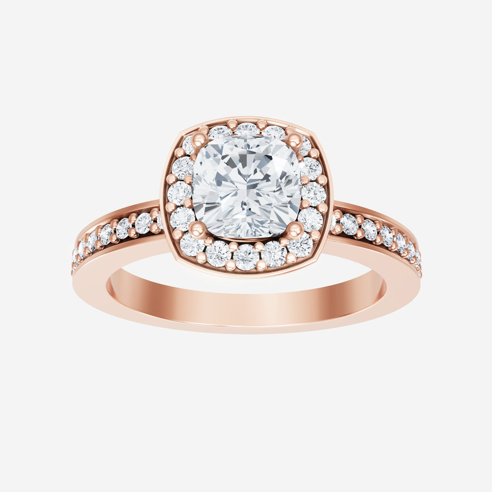 You’ve designed a ring that reflects lasting elegance and grace! Crafted from 18k Rose Gold, this exquisite Cushion lab-grown diamond is the centerpiece of this unique design. This Single Pave Shank with a Pave Halo head showcases the brilliance of the Cushion diamond, creating a timeless look. This stunning ring makes the perfect symbol of everlasting love and devotion.