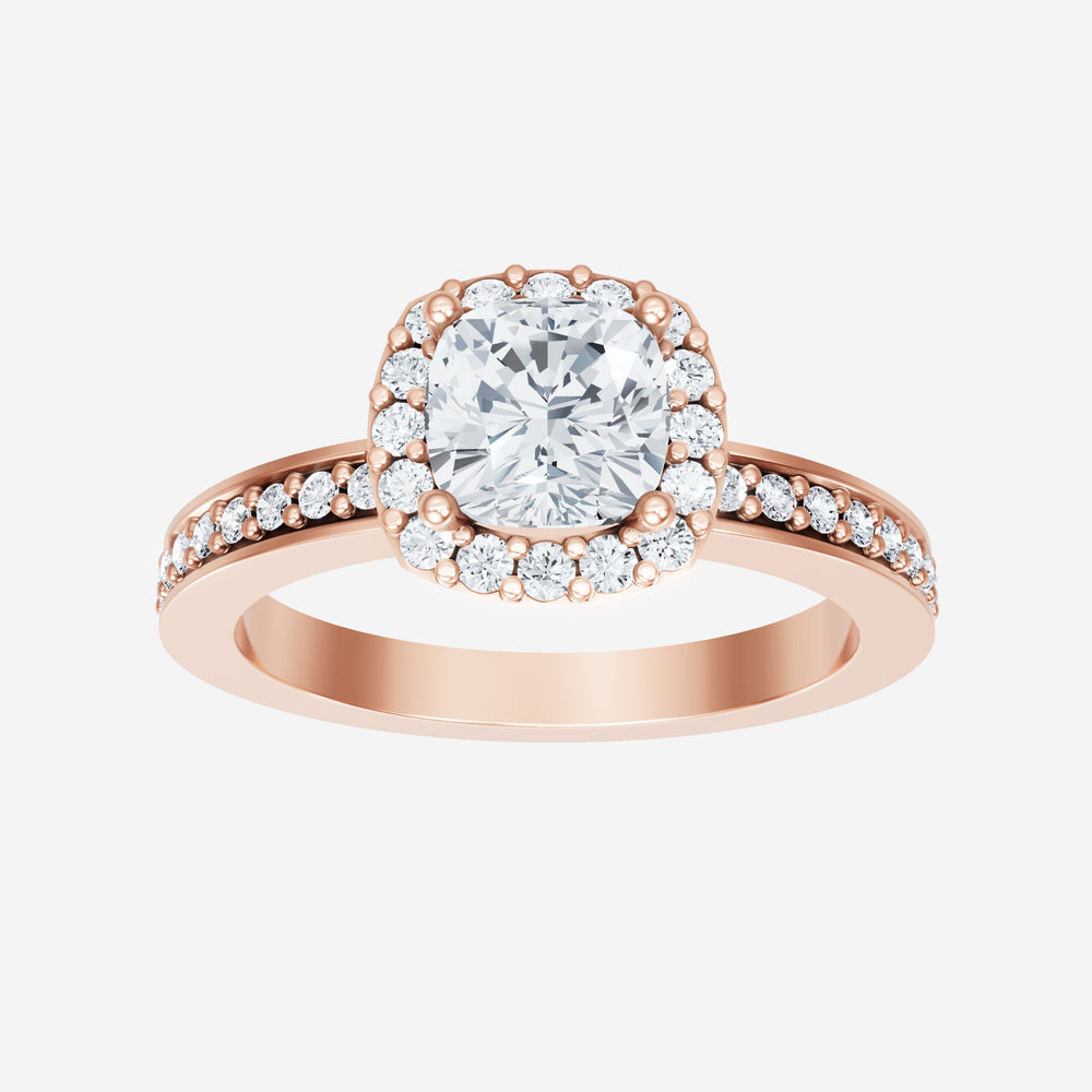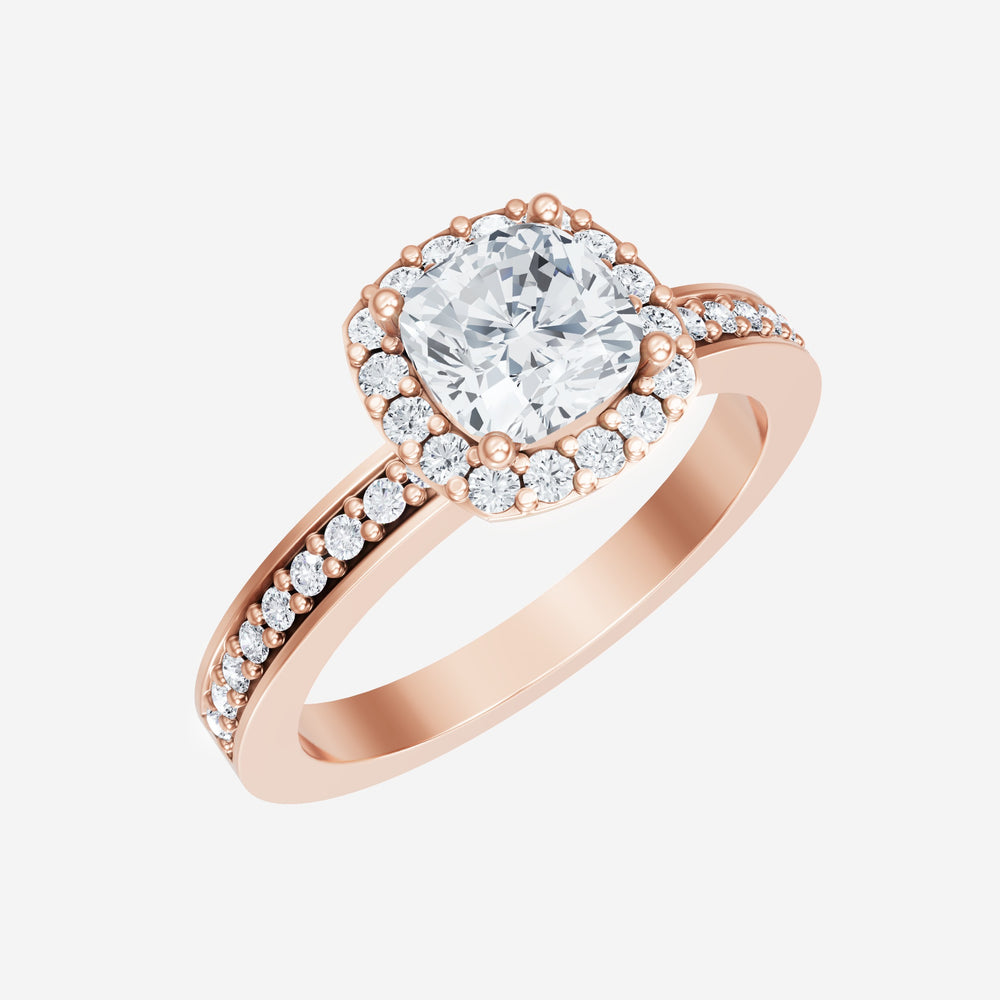 You’ve designed a ring that reflects lasting elegance and grace! Crafted from 18k Rose Gold, this exquisite Cushion lab-grown diamond is the centerpiece of this unique design. This Single Pave Shank with a Single Halo head showcases the brilliance of the Cushion diamond, creating a timeless look. This elegant piece is the perfect symbol of love, strength, and timeless beauty.
