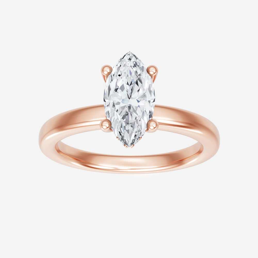 You’ve designed a ring that reflects lasting elegance and grace! Crafted from 18k Rose Gold, this exquisite Marquise lab-grown diamond is the centerpiece of this unique design. This Basic Plain Shank with a Hidden Halo head showcases the brilliance of the Marquise diamond, creating a timeless look. This stunning ring makes the perfect symbol of everlasting love and devotion.