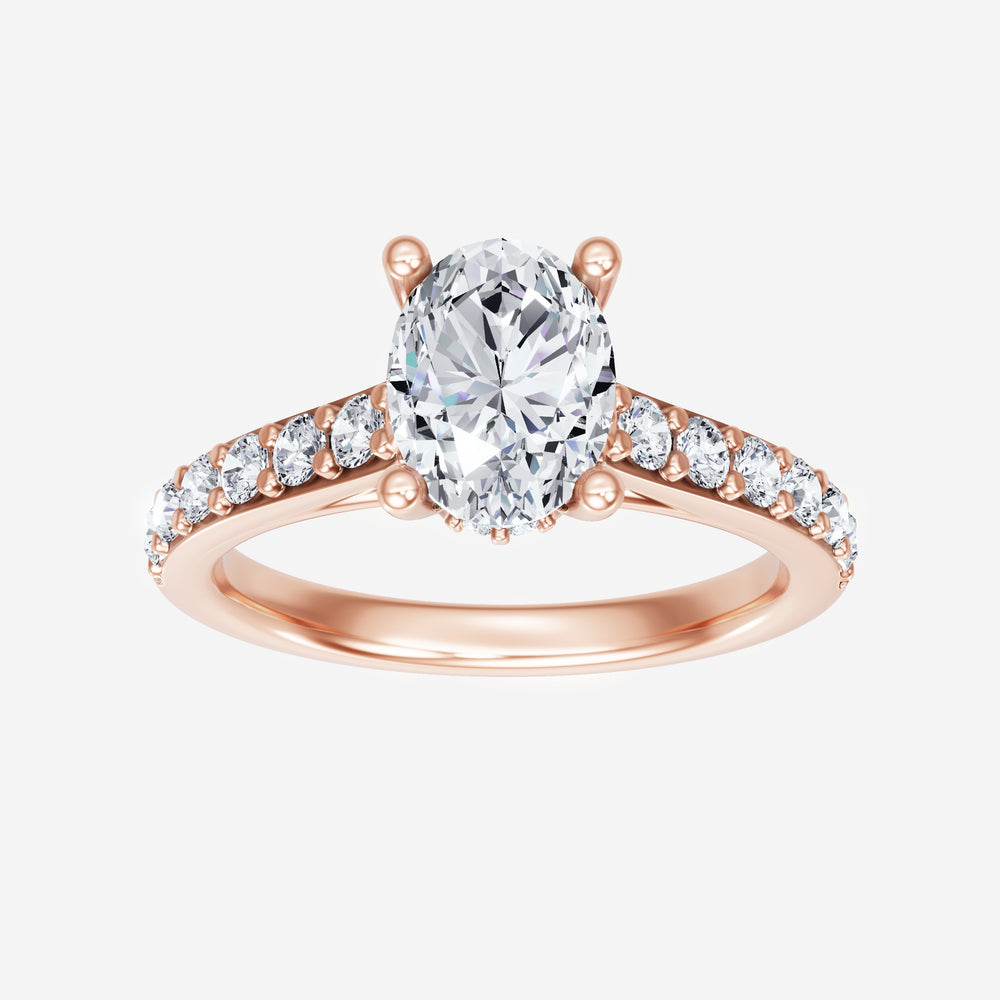 You’ve designed a ring that reflects lasting elegance and grace! Crafted from 18k Rose Gold, this exquisite Oval lab-grown diamond is the centerpiece of this unique design. This Cathedral Diamond Shank with a Hidden Halo head showcases the brilliance of the Oval diamond, creating a timeless look. Whether as a gift or a personal treasure, this ring will forever symbolize the most meaningful moments in life.