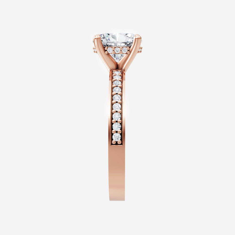 You’ve designed a ring that reflects lasting elegance and grace! Crafted from 18k Rose Gold, this exquisite Oval lab-grown diamond is the centerpiece of this unique design. This Single Pave Shank with a Hidden Halo head showcases the brilliance of the Oval diamond, creating a timeless look. Ideal for those who seek both beauty and meaning, this ring will stand as a testament to cherished memories.