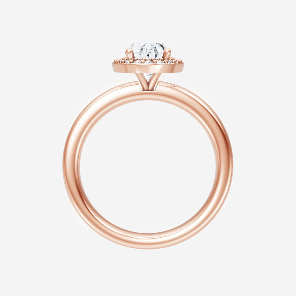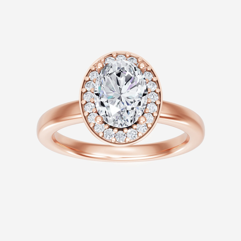 You’ve designed a ring that reflects lasting elegance and grace! Crafted from 18k Rose Gold, this exquisite Oval lab-grown diamond is the centerpiece of this unique design. This Basic Plain Shank with a Pave Halo head showcases the brilliance of the Oval diamond, creating a timeless look. Ideal for those who seek both beauty and meaning, this ring will stand as a testament to cherished memories.