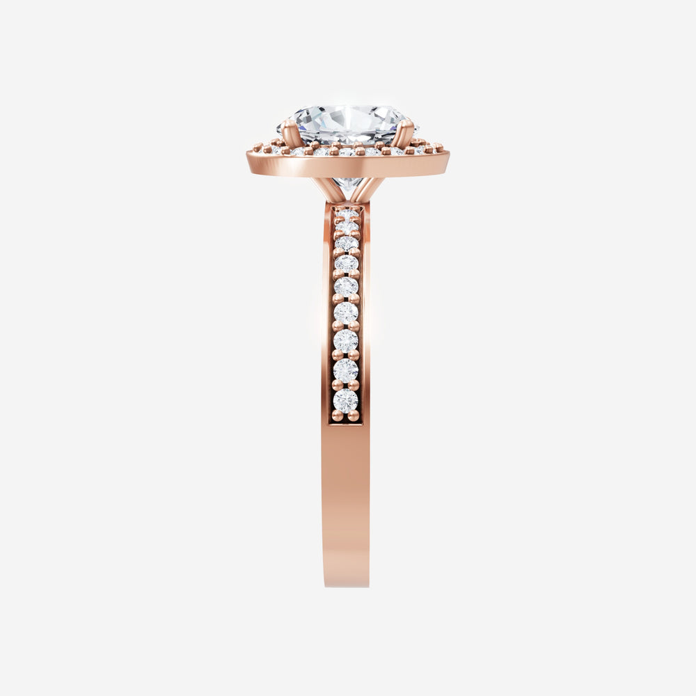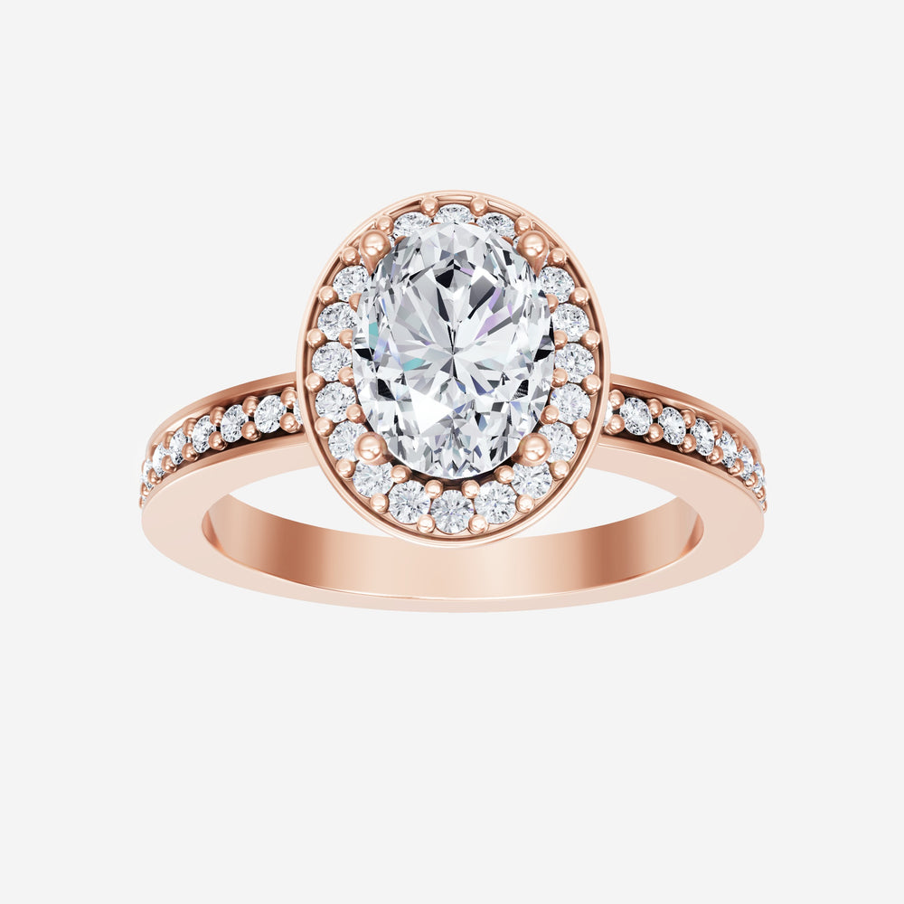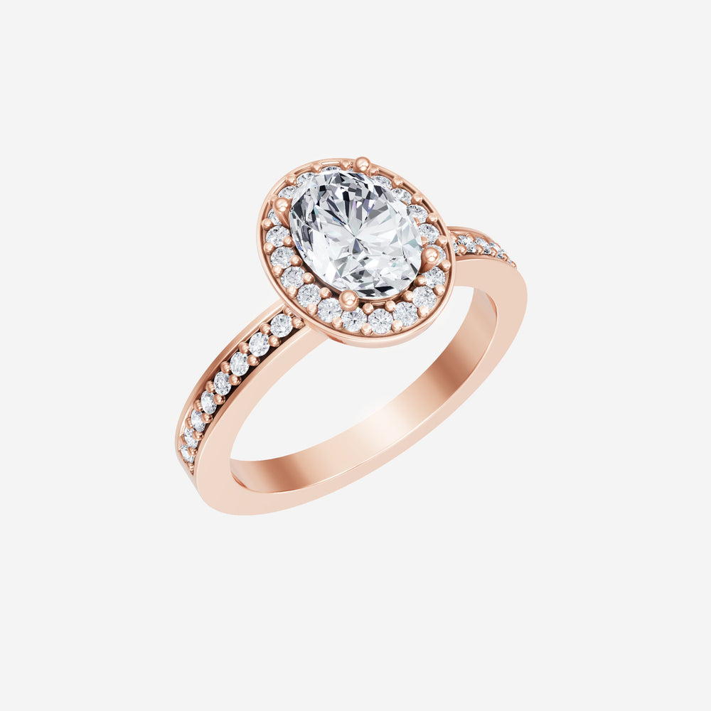 You’ve designed a ring that reflects lasting elegance and grace! Crafted from 18k Rose Gold, this exquisite Oval lab-grown diamond is the centerpiece of this unique design. This Single Pave Shank with a Pave Halo head showcases the brilliance of the Oval diamond, creating a timeless look. This stunning ring makes the perfect symbol of everlasting love and devotion.