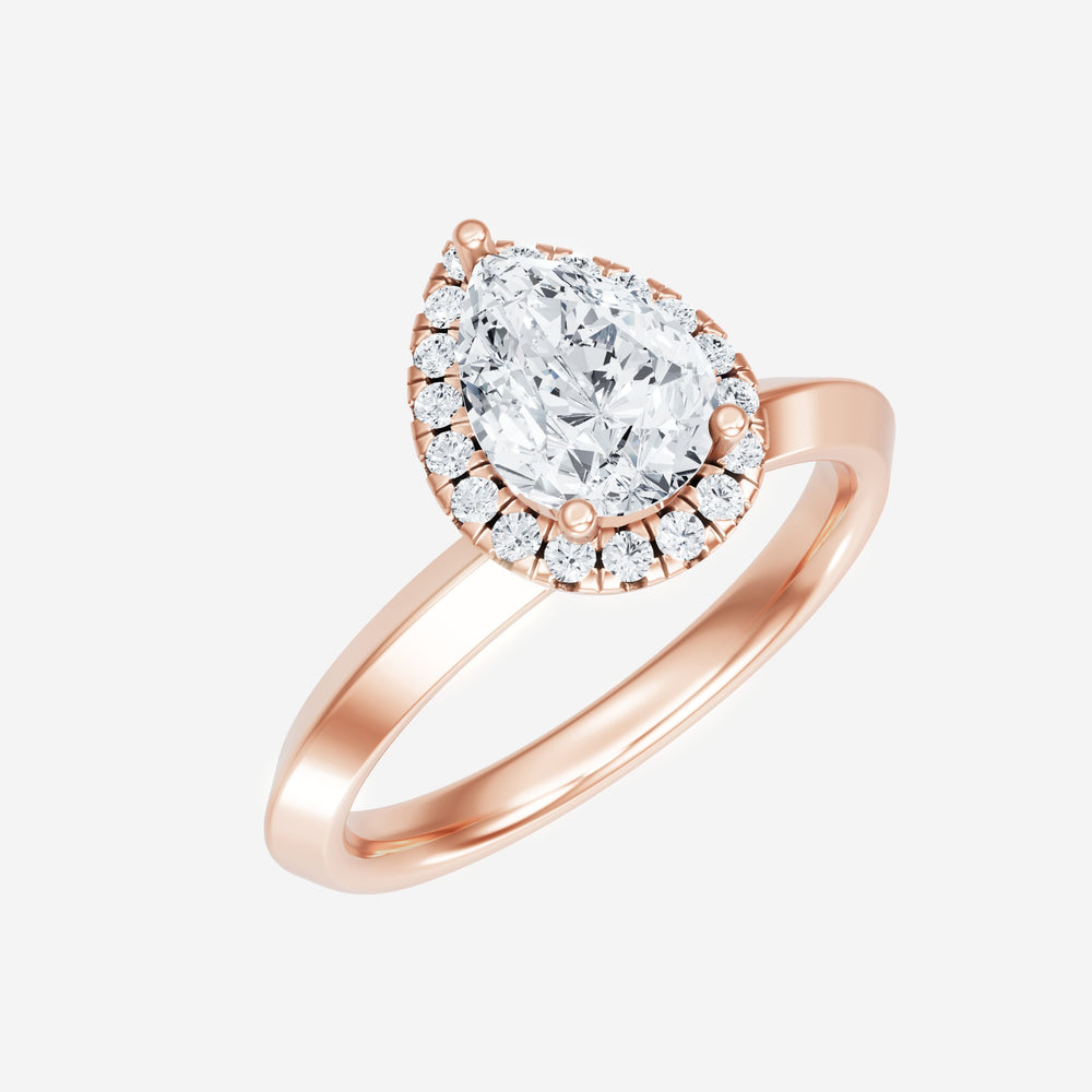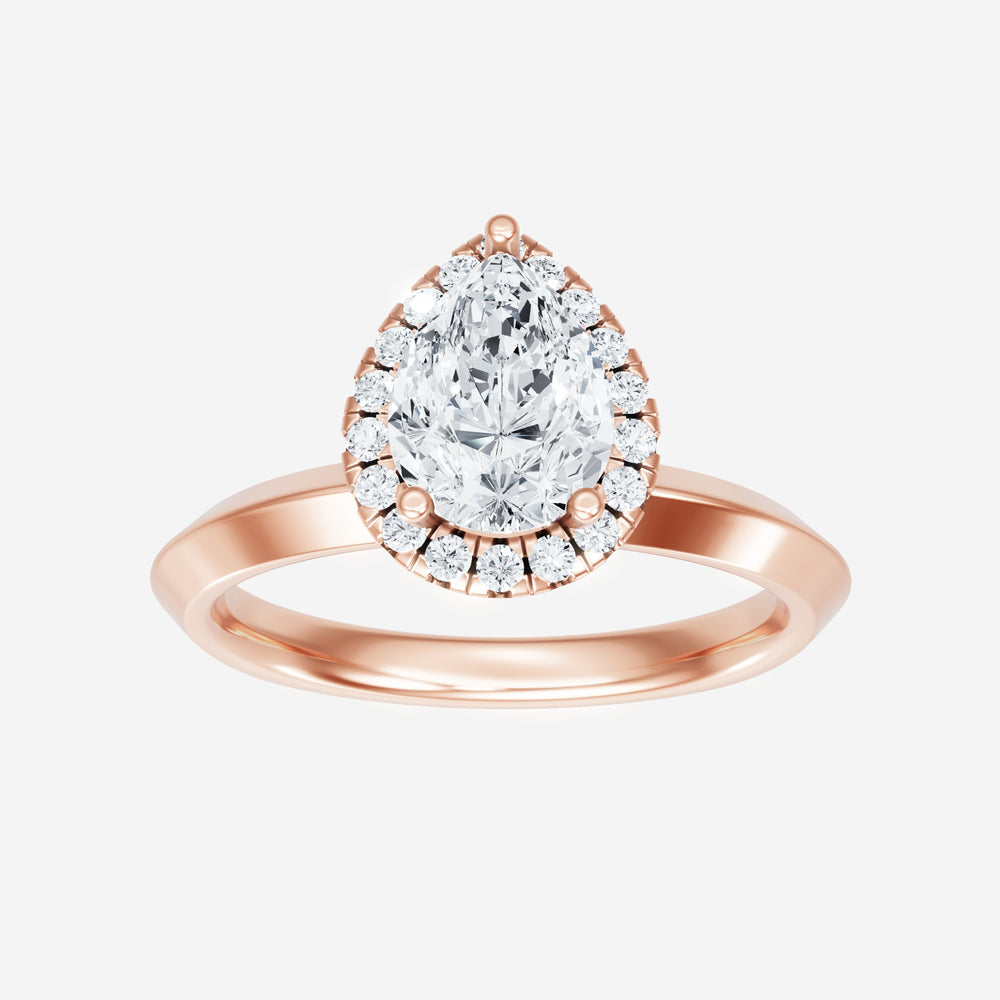 You’ve designed a ring that reflects lasting elegance and grace! Crafted from 18k Rose Gold, this exquisite Pear lab-grown diamond is the centerpiece of this unique design. This Knife Edge Shank with a Micro Halo head showcases the brilliance of the Pear diamond, creating a timeless look. This ring will become a cherished reminder of life's most treasured moments.