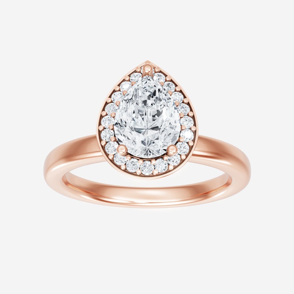You’ve designed a ring that reflects lasting elegance and grace! Crafted from 18k Rose Gold, this exquisite Pear lab-grown diamond is the centerpiece of this unique design. This Basic Plain Shank with a Pave Halo head showcases the brilliance of the Pear diamond, creating a timeless look. This elegant piece is the perfect symbol of love, strength, and timeless beauty.