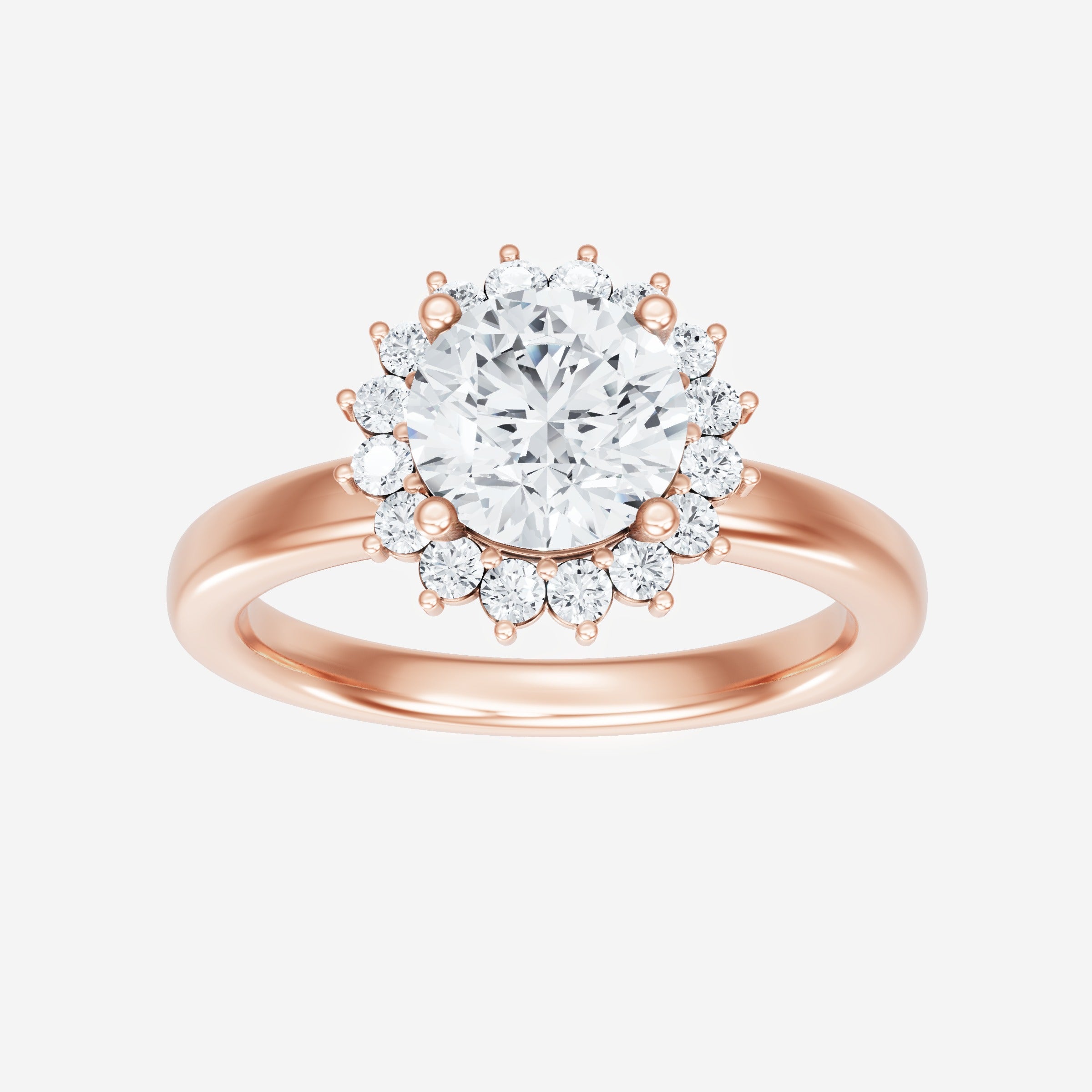 You’ve designed a ring that reflects lasting elegance and grace! Crafted from 18k Rose Gold, this exquisite Round lab-grown diamond is the centerpiece of this unique design. This Basic Plain Shank with a Diana Halo head showcases the brilliance of the Round diamond, creating a timeless look. With this ring, celebrate every moment of joy, success, and love.