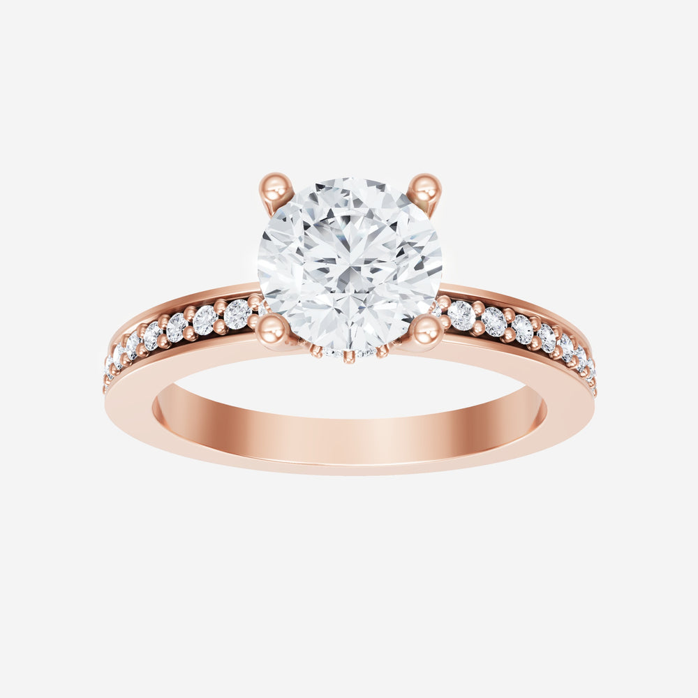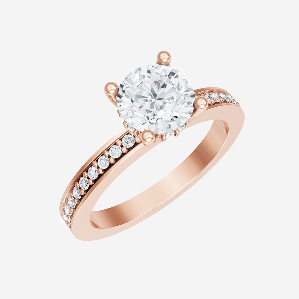 You’ve designed a ring that reflects lasting elegance and grace! Crafted from 18k Rose Gold, this exquisite Round lab-grown diamond is the centerpiece of this unique design. This Single Pave Shank with a Hidden Halo head showcases the brilliance of the Round diamond, creating a timeless look. This ring will become a cherished reminder of life's most treasured moments.