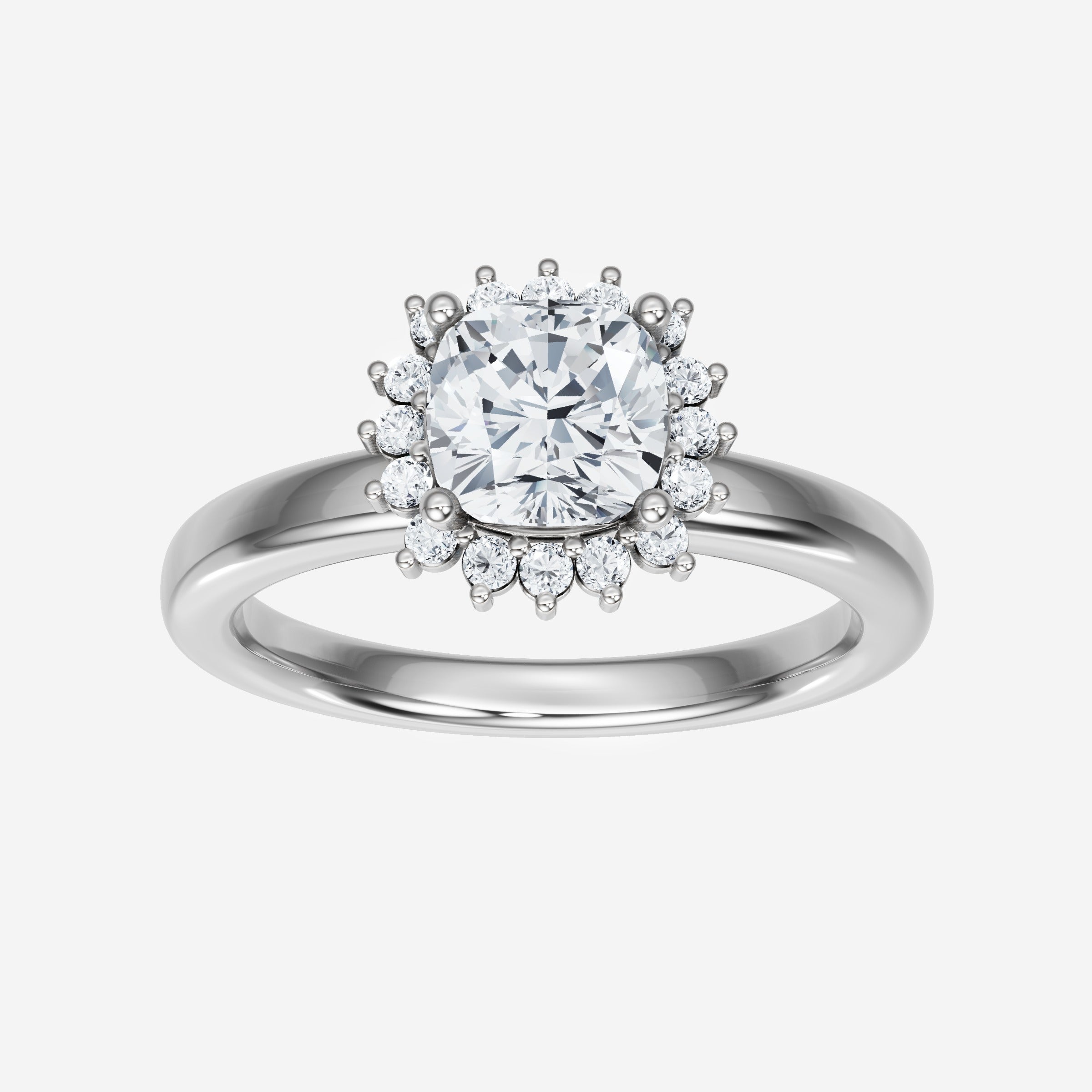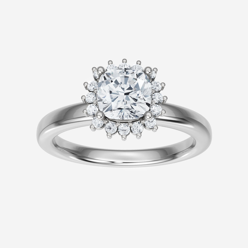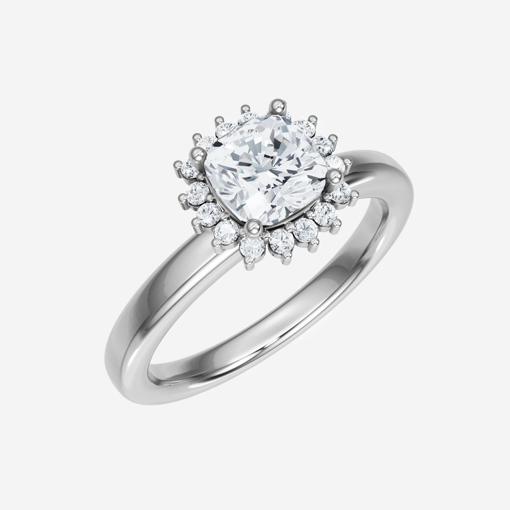 You’ve designed a ring that reflects lasting elegance and grace! Crafted from 18k White Gold, this exquisite Cushion lab-grown diamond is the centerpiece of this unique design. This Basic Plain Shank with a Diana Halo head showcases the brilliance of the Cushion diamond, creating a timeless look. This elegant piece is the perfect symbol of love, strength, and timeless beauty.