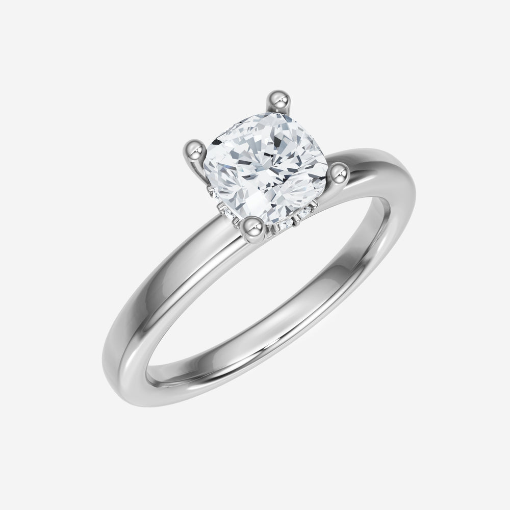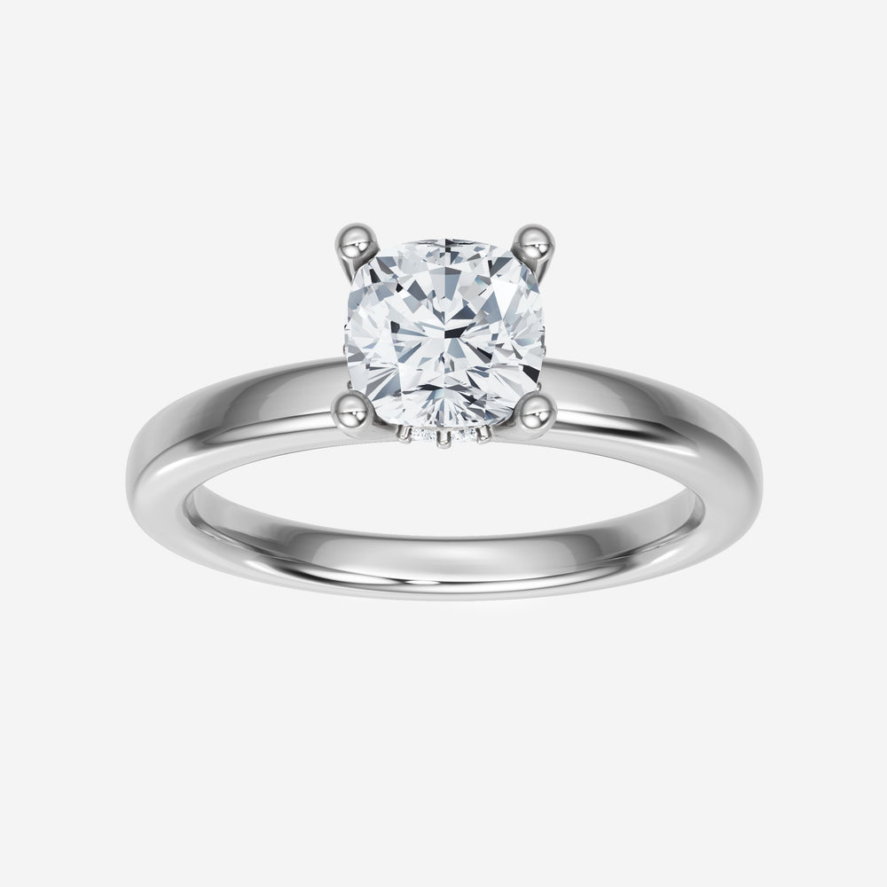 You’ve designed a ring that reflects lasting elegance and grace! Crafted from 18k White Gold, this exquisite Cushion lab-grown diamond is the centerpiece of this unique design. This Basic Plain Shank with a Hidden Halo head showcases the brilliance of the Cushion diamond, creating a timeless look. This elegant piece is the perfect symbol of love, strength, and timeless beauty.