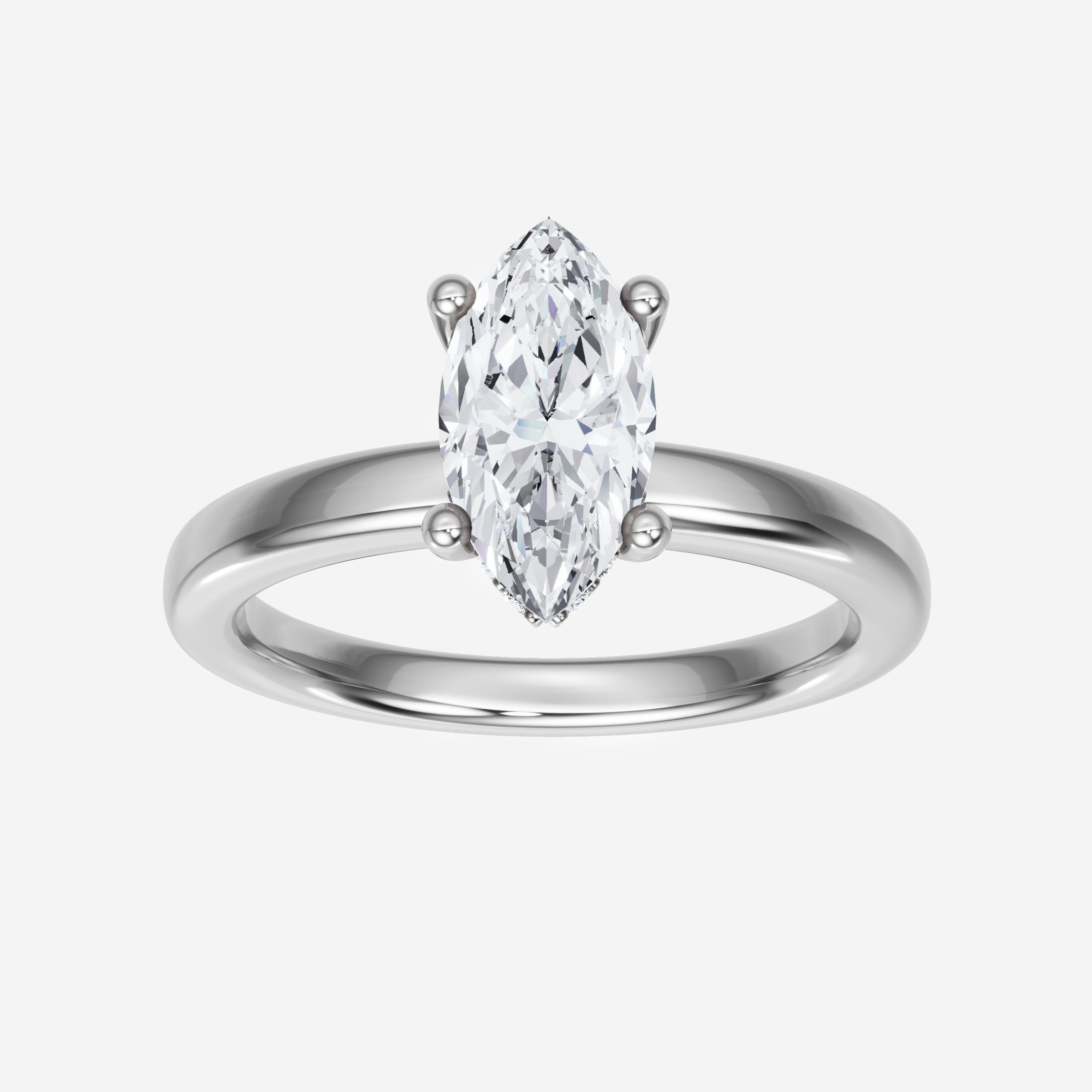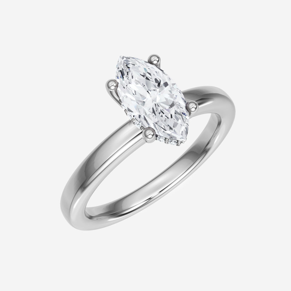 You’ve designed a ring that reflects lasting elegance and grace! Crafted from 18k White Gold, this exquisite Marquise lab-grown diamond is the centerpiece of this unique design. This Basic Plain Shank with a Hidden Halo head showcases the brilliance of the Marquise diamond, creating a timeless look. A perfect choice to celebrate love, commitment, and everything in between.