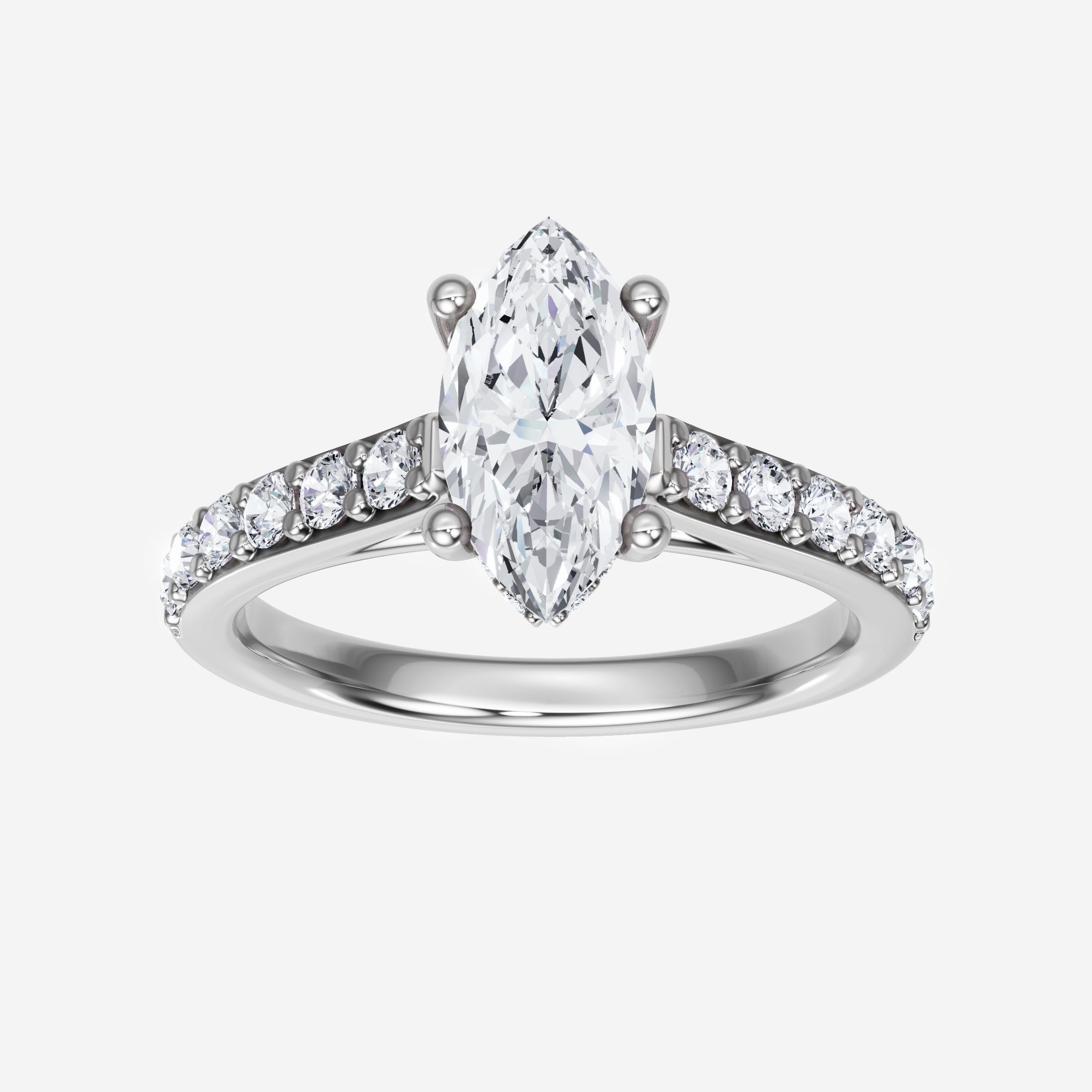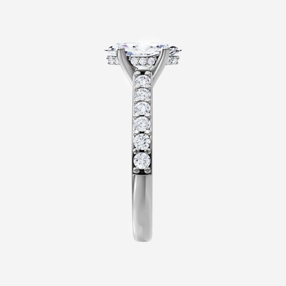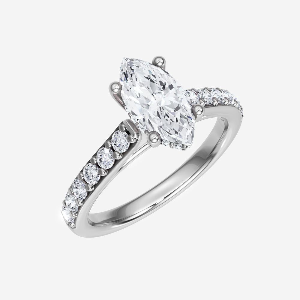 You’ve designed a ring that reflects lasting elegance and grace! Crafted from 18k White Gold, this exquisite Marquise lab-grown diamond is the centerpiece of this unique design. This Cathedral Diamond Shank with a Hidden Halo head showcases the brilliance of the Marquise diamond, creating a timeless look. It's a piece of elegance and beauty, perfect for marking life's most beautiful occasions.