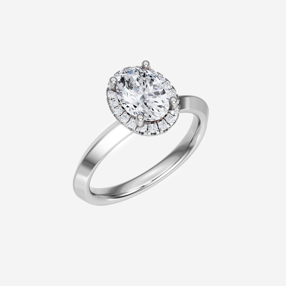 You’ve designed a ring that reflects lasting elegance and grace! Crafted from 18k White Gold, this exquisite Oval lab-grown diamond is the centerpiece of this unique design. This Knife Edge Shank with a Micro Halo head showcases the brilliance of the Oval diamond, creating a timeless look. It's a piece of elegance and beauty, perfect for marking life's most beautiful occasions.