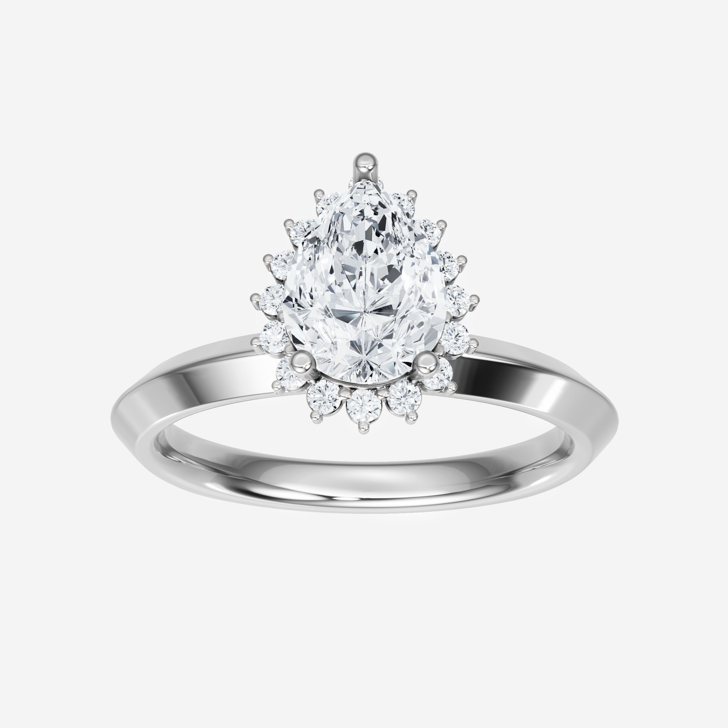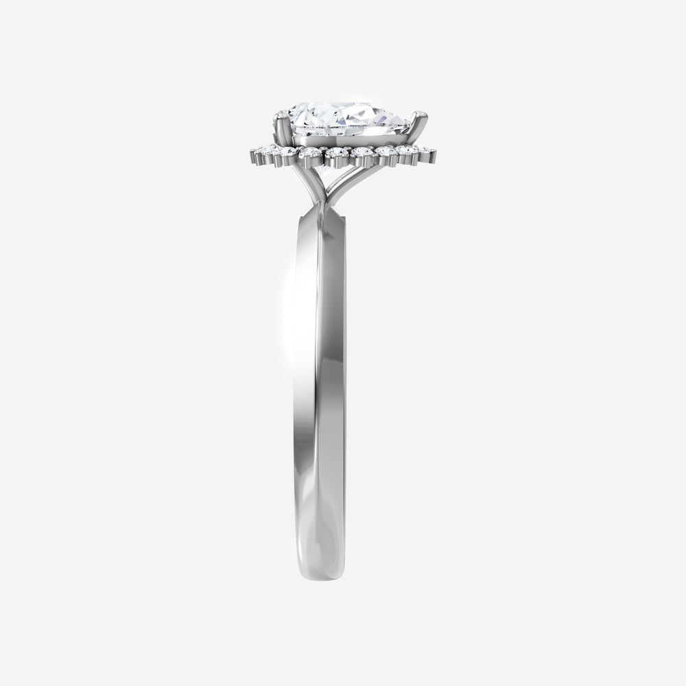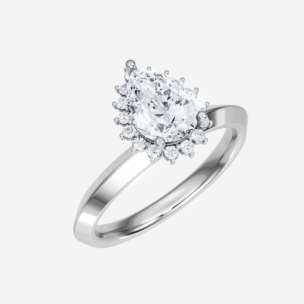 You’ve designed a ring that reflects lasting elegance and grace! Crafted from 18k White Gold, this exquisite Pear lab-grown diamond is the centerpiece of this unique design. This Knife Edge Shank with a Diana Halo head showcases the brilliance of the Pear diamond, creating a timeless look. With this ring, celebrate every moment of joy, success, and love.