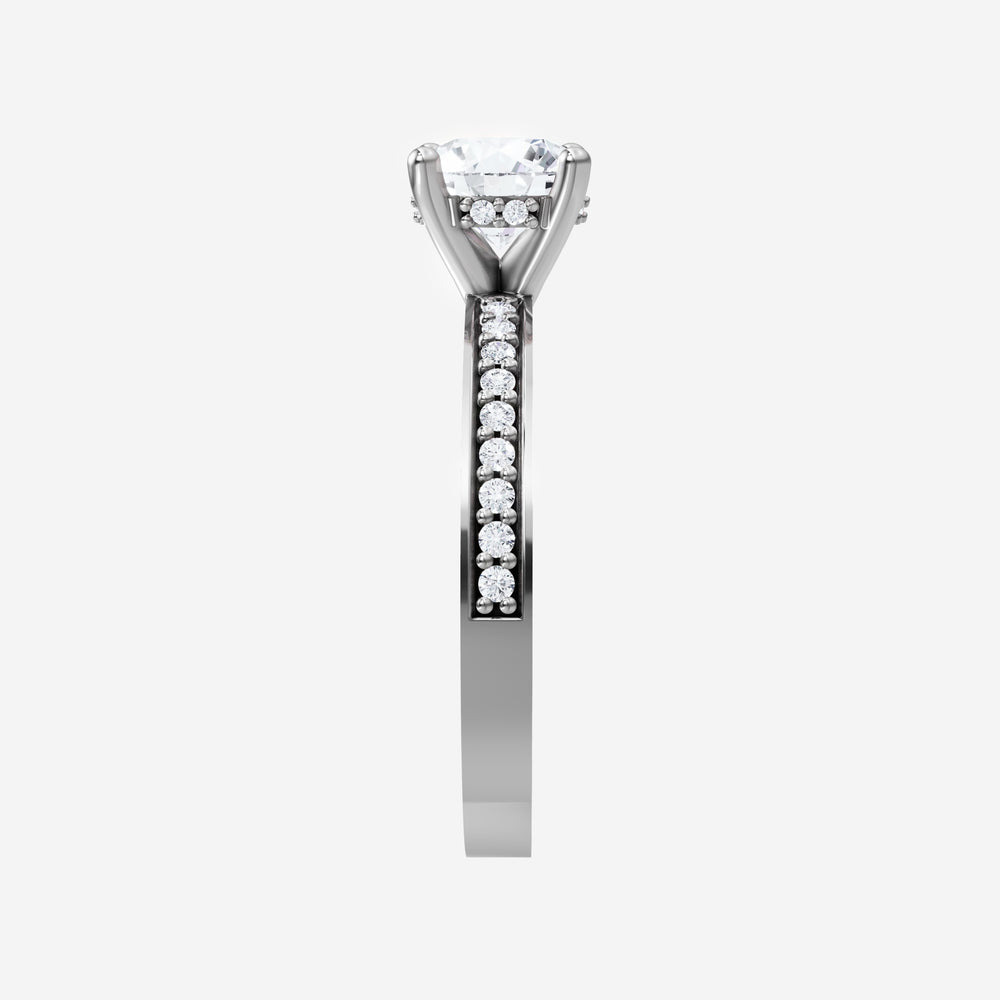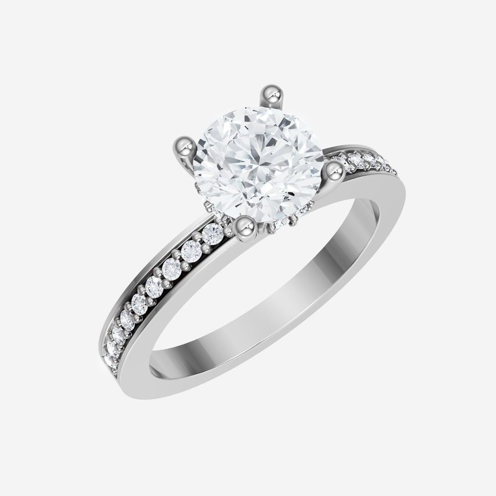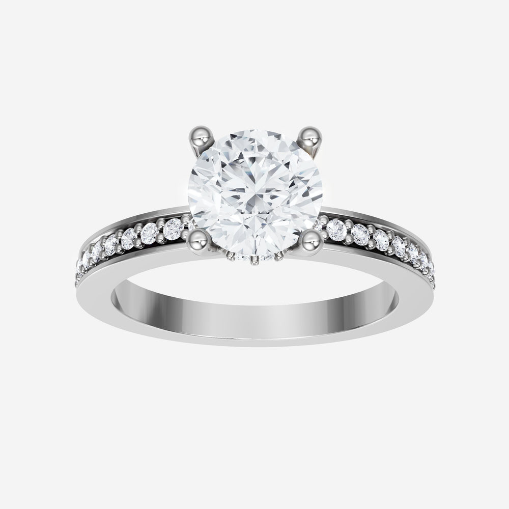 You’ve designed a ring that reflects lasting elegance and grace! Crafted from 18k White Gold, this exquisite Round lab-grown diamond is the centerpiece of this unique design. This Single Pave Shank with a Hidden Halo head showcases the brilliance of the Round diamond, creating a timeless look. This elegant piece is the perfect symbol of love, strength, and timeless beauty.