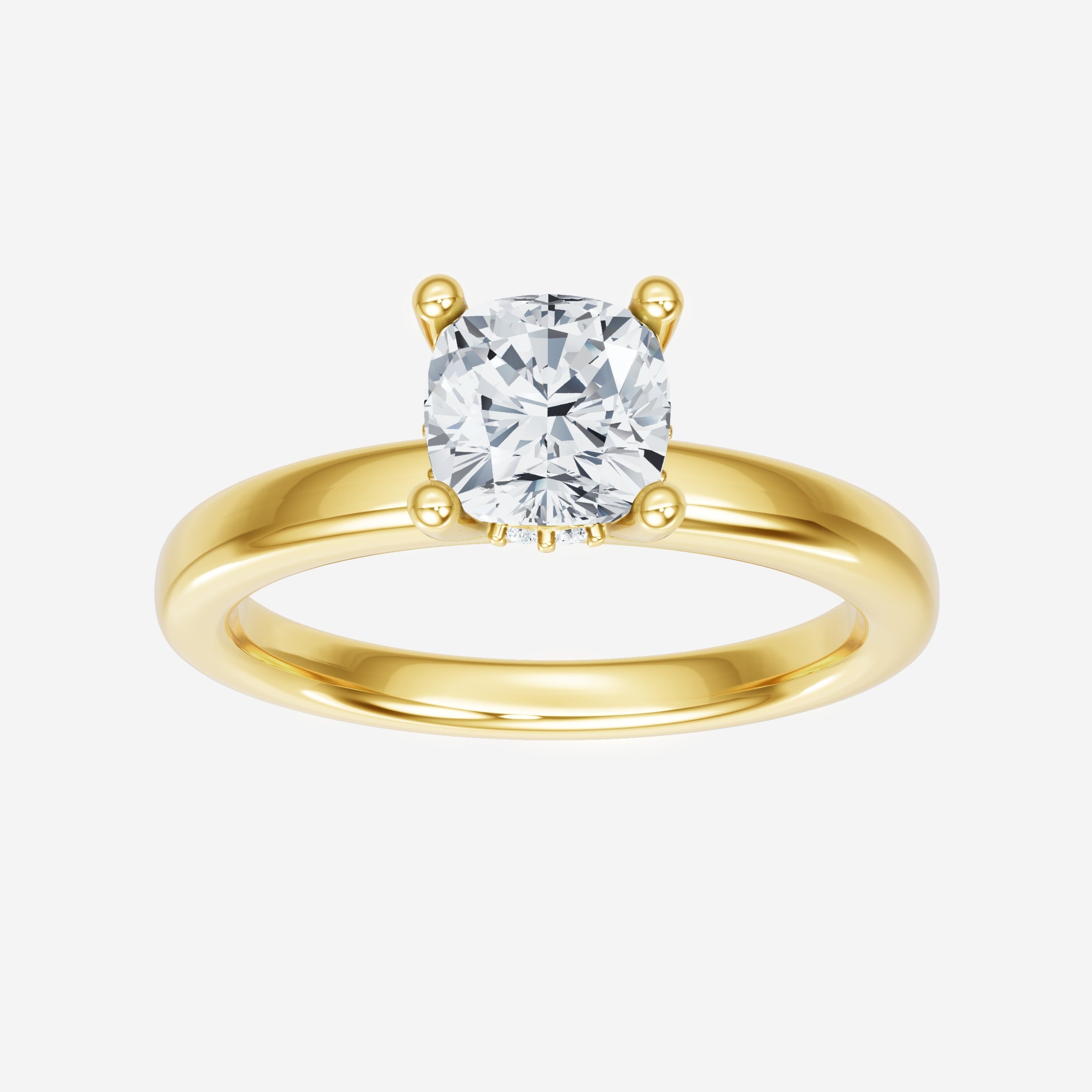 You’ve designed a ring that reflects lasting elegance and grace! Crafted from 18k Yellow Gold, this exquisite Cushion lab-grown diamond is the centerpiece of this unique design. This Basic Plain Shank with a Hidden Halo head showcases the brilliance of the Cushion diamond, creating a timeless look. A perfect choice to celebrate love, commitment, and everything in between.