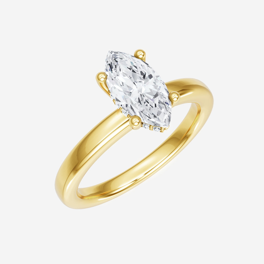 You’ve designed a ring that reflects lasting elegance and grace! Crafted from 18k Yellow Gold, this exquisite Marquise lab-grown diamond is the centerpiece of this unique design. This Basic Plain Shank with a Hidden Halo head showcases the brilliance of the Marquise diamond, creating a timeless look. This elegant piece is the perfect symbol of love, strength, and timeless beauty.