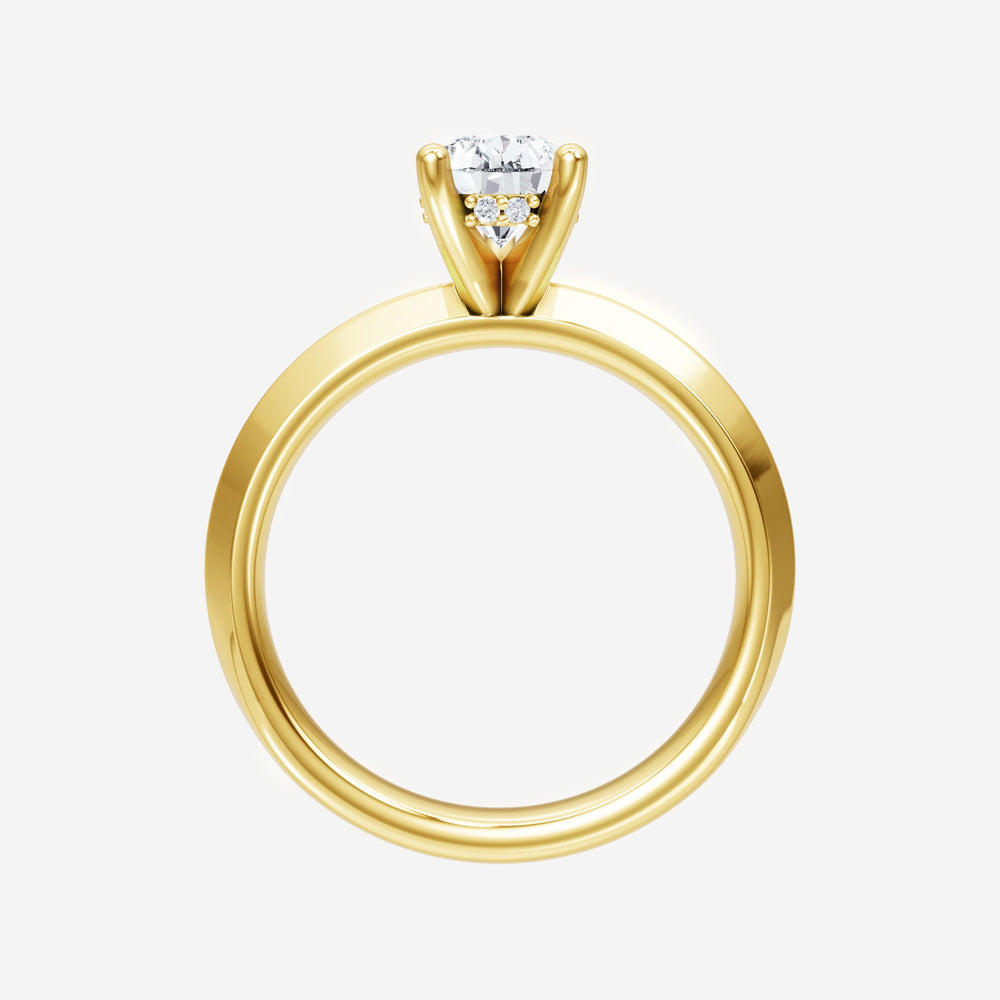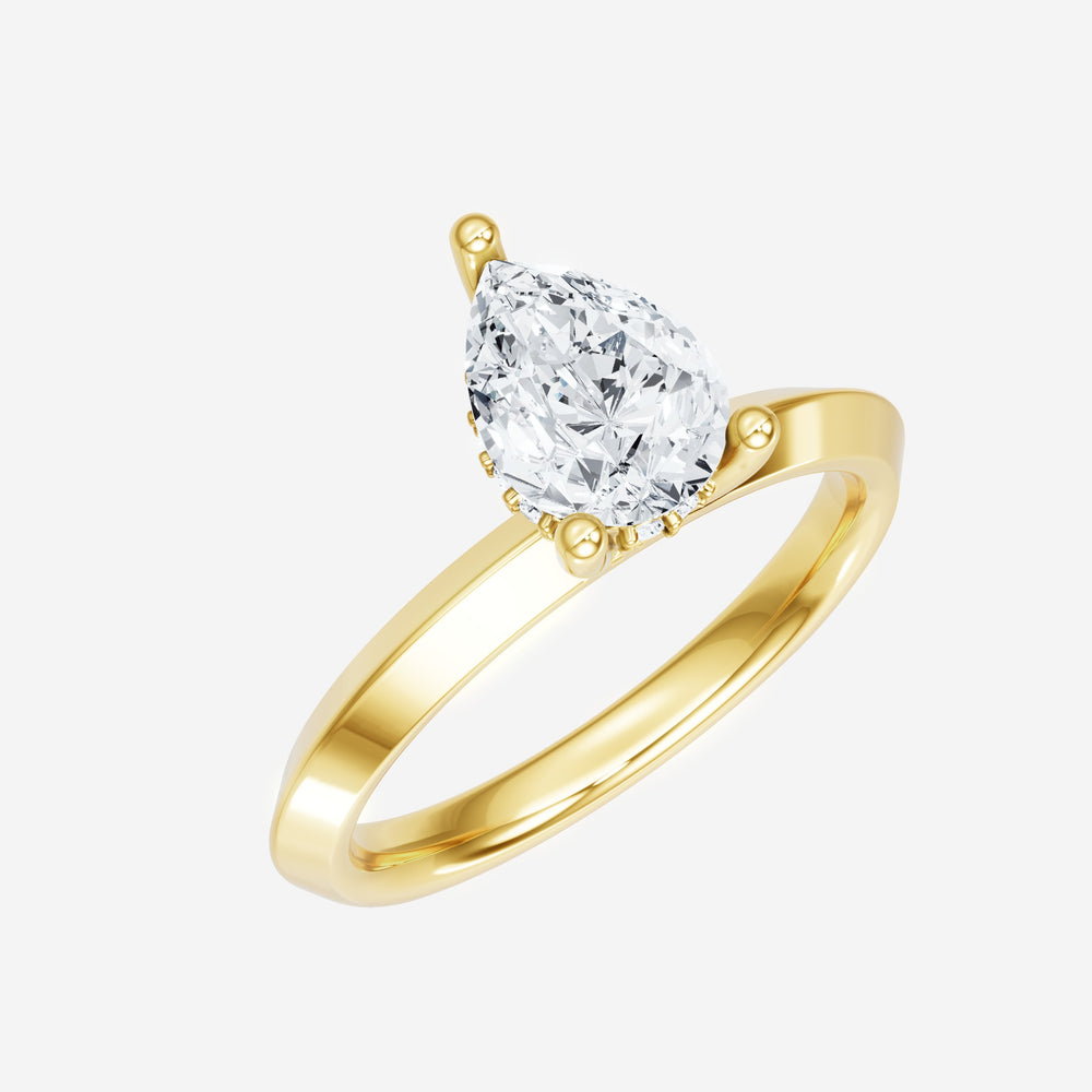You’ve designed a ring that reflects lasting elegance and grace! Crafted from 18k Yellow Gold, this exquisite Pear lab-grown diamond is the centerpiece of this unique design. This Knife Edge Shank with a Hidden Halo head showcases the brilliance of the Pear diamond, creating a timeless look. Ideal for those who seek both beauty and meaning, this ring will stand as a testament to cherished memories.