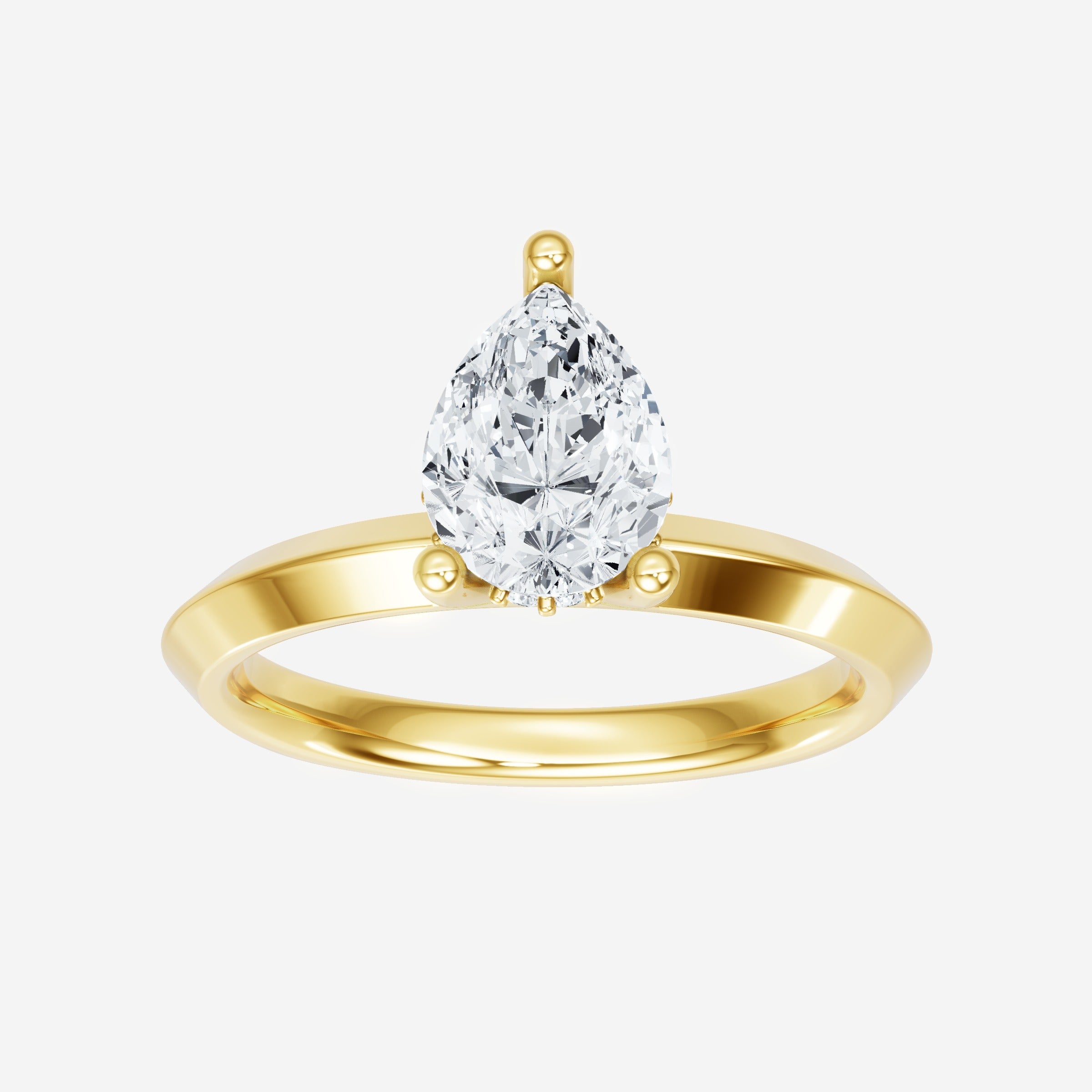 You’ve designed a ring that reflects lasting elegance and grace! Crafted from 18k Yellow Gold, this exquisite Pear lab-grown diamond is the centerpiece of this unique design. This Knife Edge Shank with a Hidden Halo head showcases the brilliance of the Pear diamond, creating a timeless look. This elegant piece is the perfect symbol of love, strength, and timeless beauty.