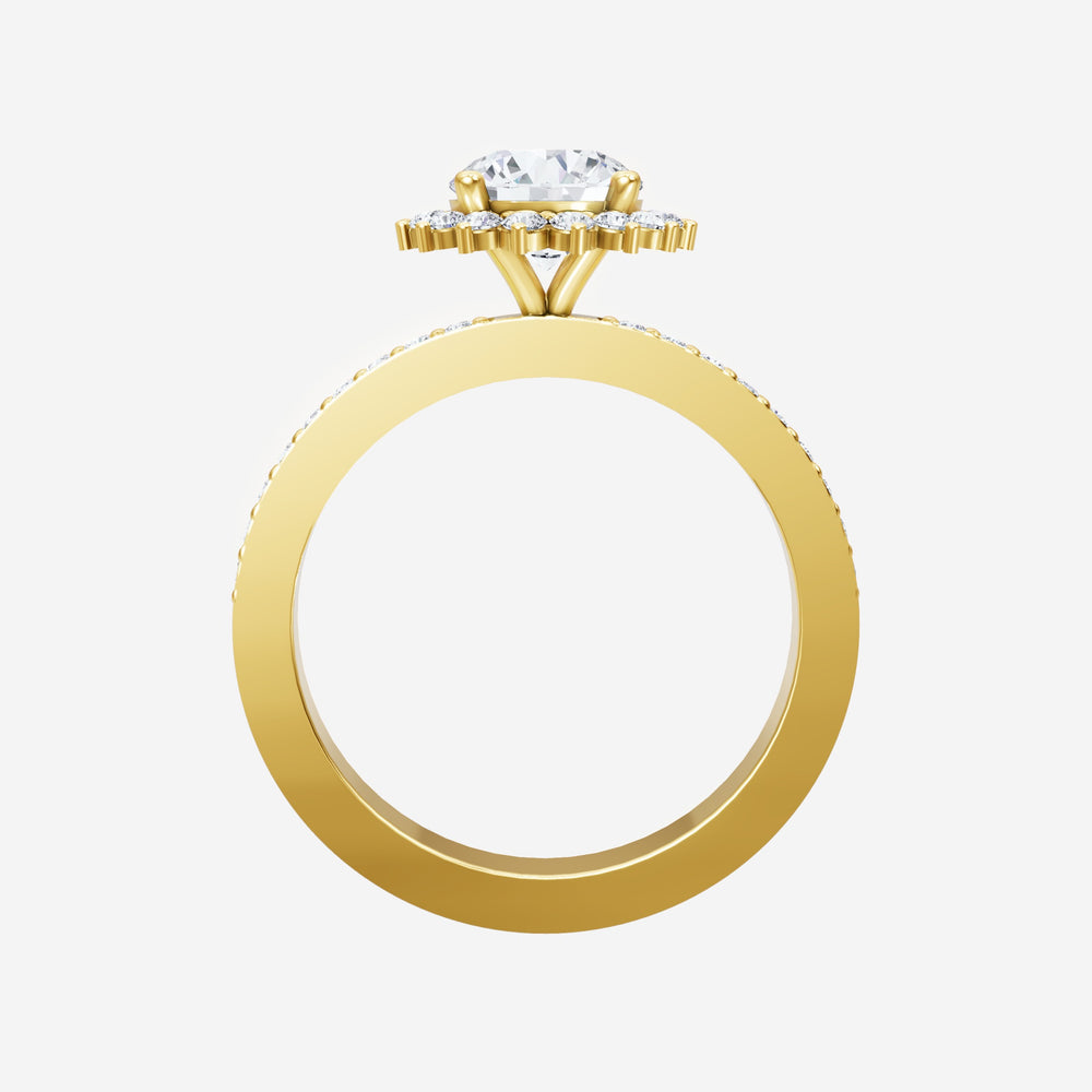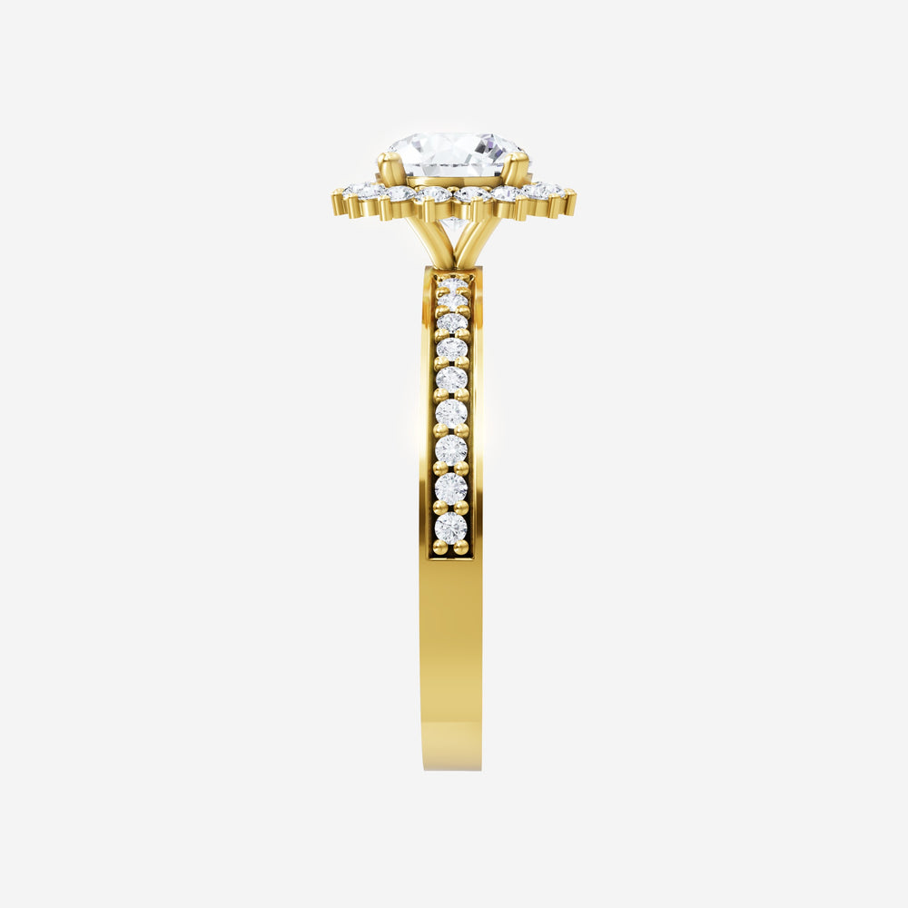 You’ve designed a ring that reflects lasting elegance and grace! Crafted from 18k Yellow Gold, this exquisite Round lab-grown diamond is the centerpiece of this unique design. This Single Pave Shank with a Diana Halo head showcases the brilliance of the Round diamond, creating a timeless look. Ideal for those who seek both beauty and meaning, this ring will stand as a testament to cherished memories.