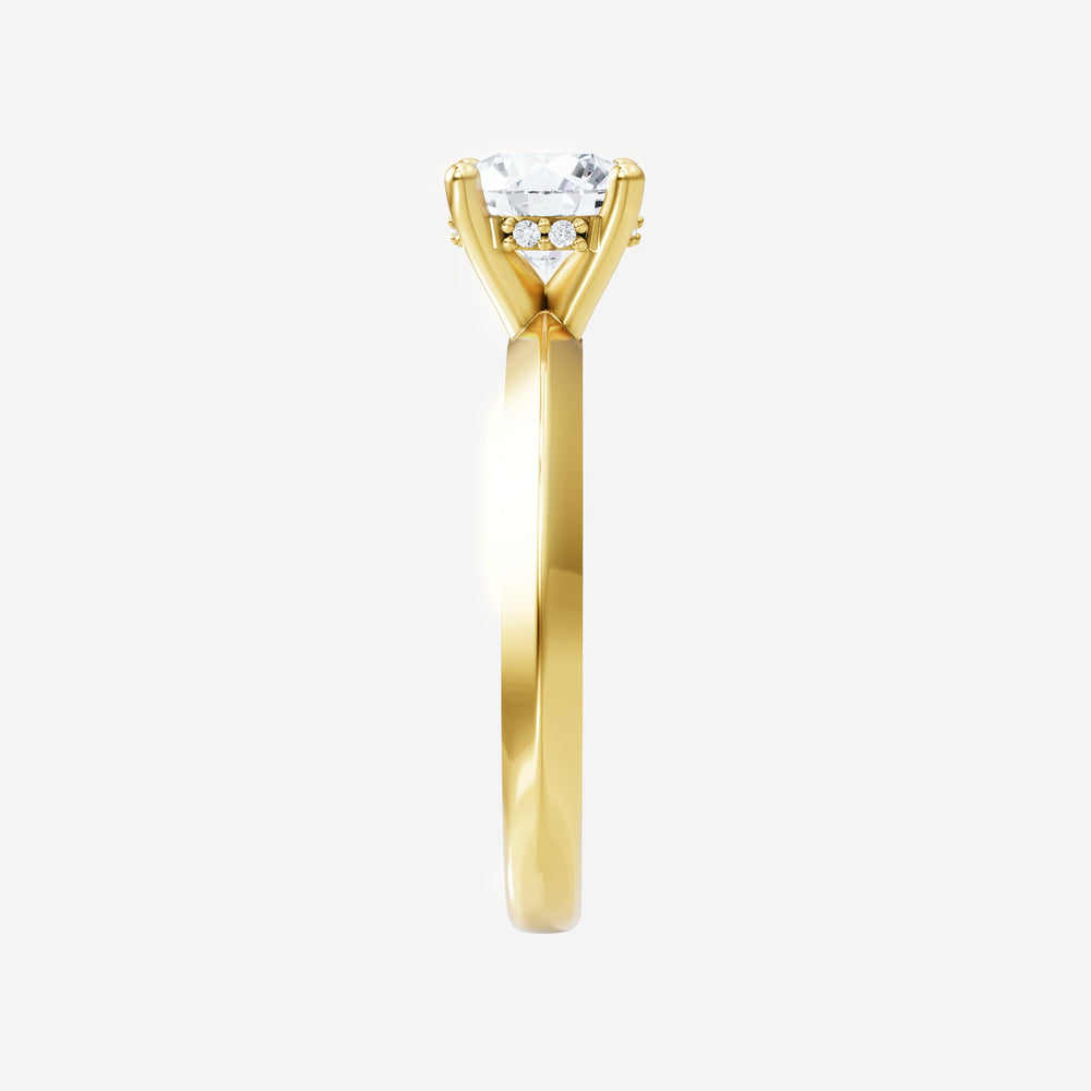 You’ve designed a ring that reflects lasting elegance and grace! Crafted from 18k Yellow Gold, this exquisite Round lab-grown diamond is the centerpiece of this unique design. This Knife Edge Shank with a Hidden Halo head showcases the brilliance of the Round diamond, creating a timeless look. Ideal for those who seek both beauty and meaning, this ring will stand as a testament to cherished memories.