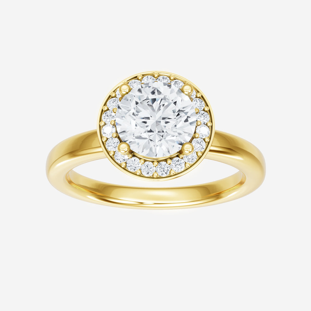 You’ve designed a ring that reflects lasting elegance and grace! Crafted from 18k Yellow Gold, this exquisite Round lab-grown diamond is the centerpiece of this unique design. This Basic Plain Shank with a Pave Halo head showcases the brilliance of the Round diamond, creating a timeless look. It's a piece of elegance and beauty, perfect for marking life's most beautiful occasions.