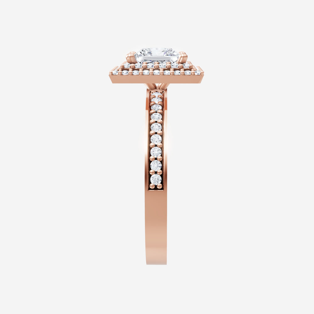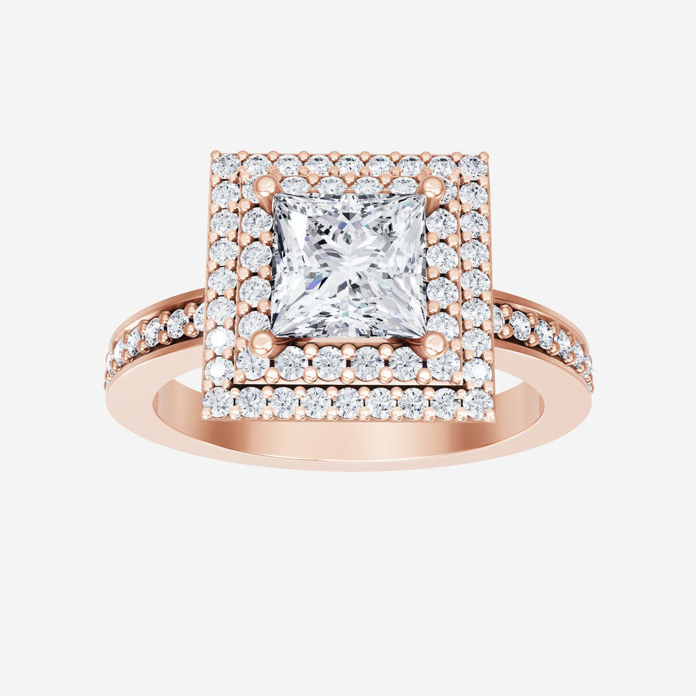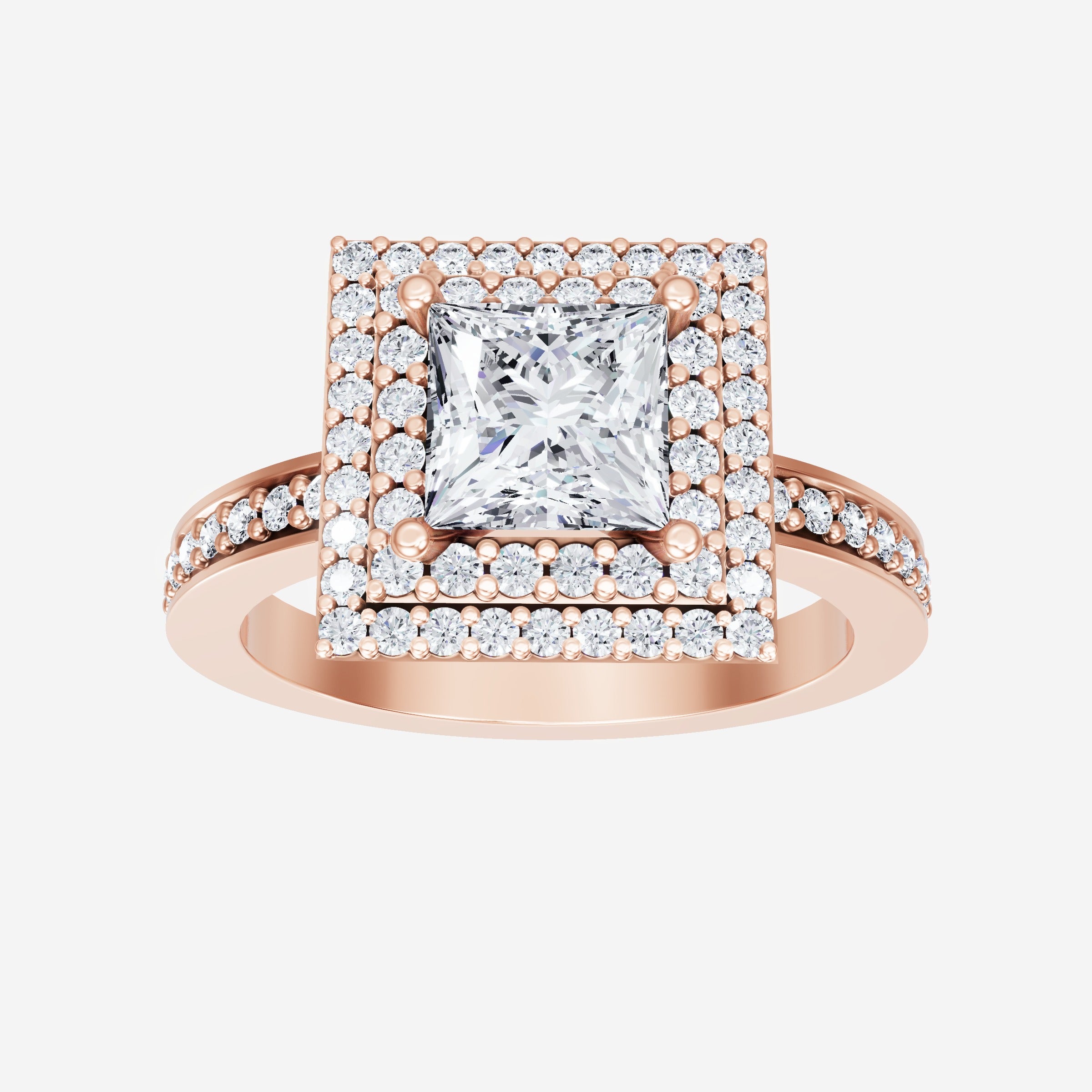 You’ve designed a ring that reflects lasting elegance and grace! Crafted from 14k Rose Gold, this exquisite Princess lab-grown diamond is the centerpiece of this unique design. This Single Pave Shank with a Double Halo head showcases the brilliance of the Princess diamond, creating a timeless look. Ideal for those who seek both beauty and meaning, this ring will stand as a testament to cherished memories.