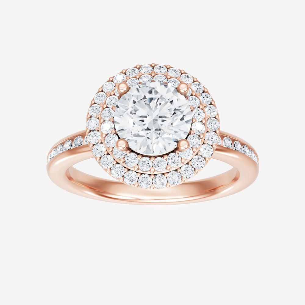 You’ve designed a ring that reflects lasting elegance and grace! Crafted from 14k Rose Gold, this exquisite Round lab-grown diamond is the centerpiece of this unique design. This Channel Set Shank with a Double Halo head showcases the brilliance of the Round diamond, creating a timeless look. Whether as a gift or a personal treasure, this ring will forever symbolize the most meaningful moments in life.