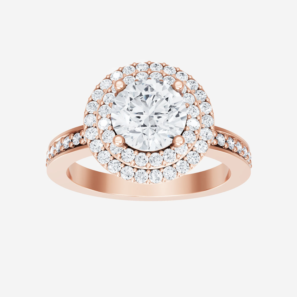 You’ve designed a ring that reflects lasting elegance and grace! Crafted from 14k Rose Gold, this exquisite Round lab-grown diamond is the centerpiece of this unique design. This Single Pave Shank with a Double Halo head showcases the brilliance of the Round diamond, creating a timeless look. With this ring, celebrate every moment of joy, success, and love.