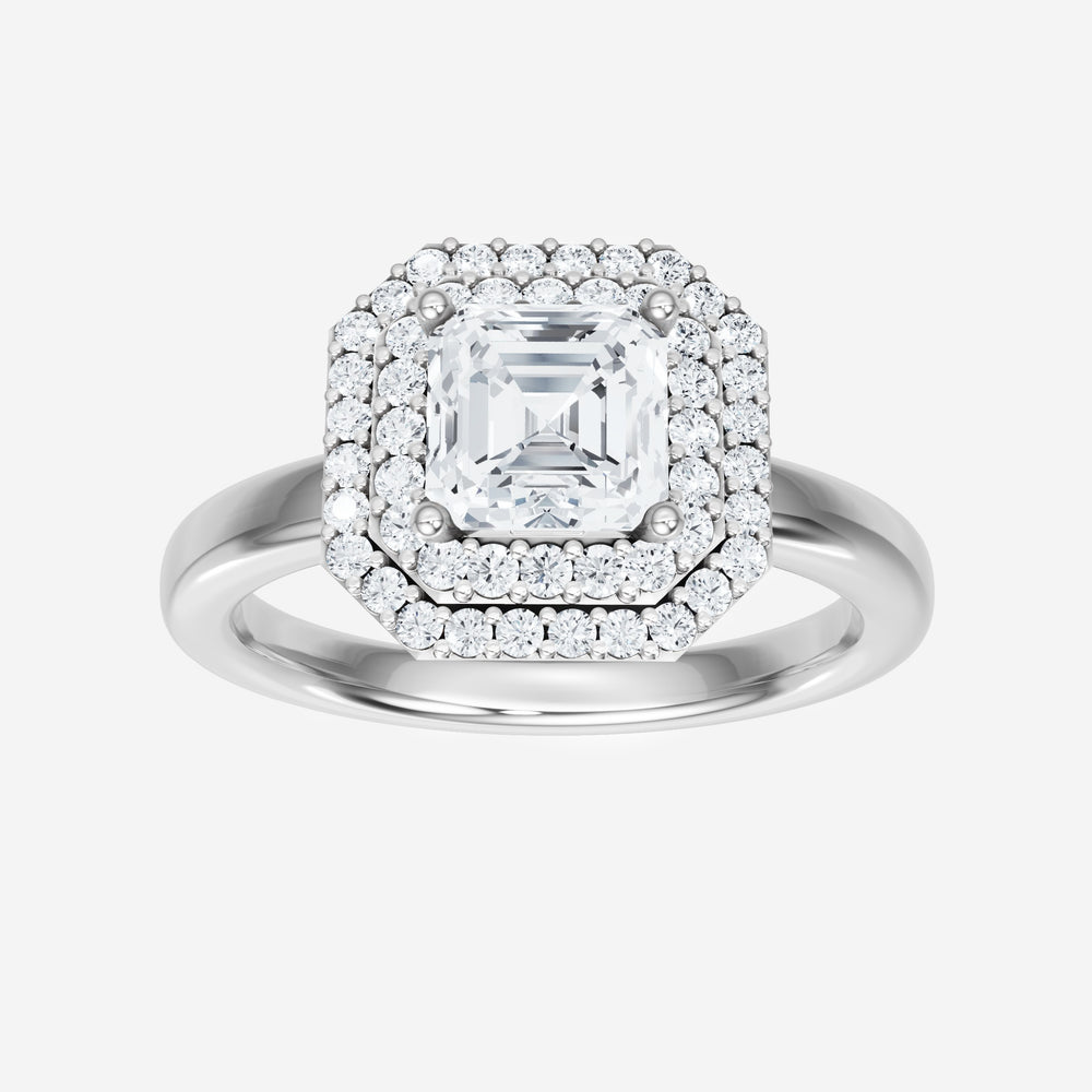 You’ve designed a ring that reflects lasting elegance and grace! Crafted from 14K White Gold, this exquisite Asscher lab-grown diamond is the centerpiece of this unique design. This Basic Plain Shank with a Double Halo head showcases the brilliance of the Asscher diamond, creating a timeless look. This stunning ring makes the perfect symbol of everlasting love and devotion.