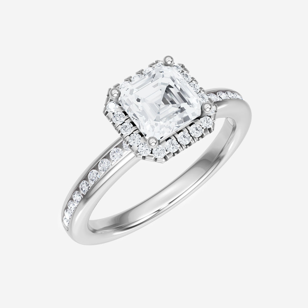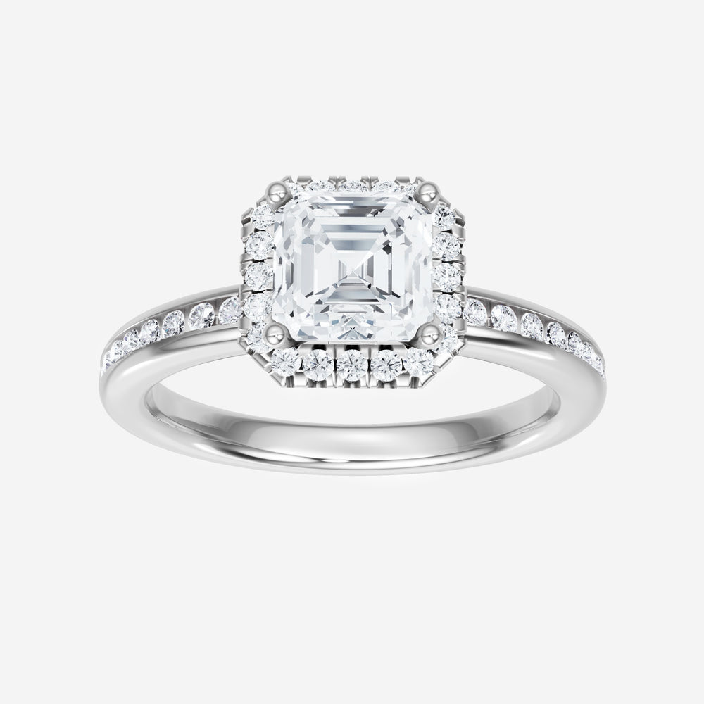 You’ve designed a ring that reflects lasting elegance and grace! Crafted from 14K White Gold, this exquisite Asscher lab-grown diamond is the centerpiece of this unique design. This Channel Set Shank with a Micro Halo head showcases the brilliance of the Asscher diamond, creating a timeless look. This stunning ring makes the perfect symbol of everlasting love and devotion.