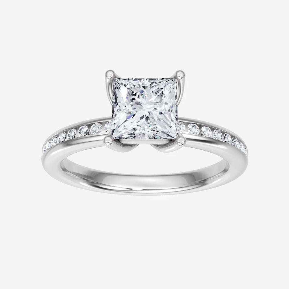 You’ve designed a ring that reflects lasting elegance and grace! Crafted from 14K White Gold, this exquisite Princess lab-grown diamond is the centerpiece of this unique design. This Channel Set Shank with a 4 Prong Flower Head head showcases the brilliance of the Princess diamond, creating a timeless look. A perfect choice to celebrate love, commitment, and everything in between.