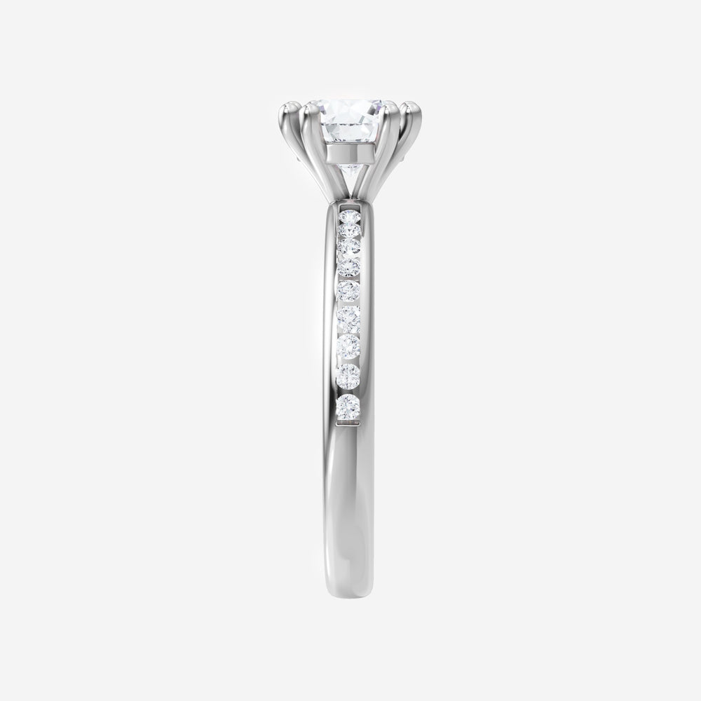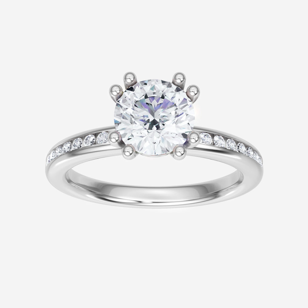 You’ve designed a ring that reflects lasting elegance and grace! Crafted from 14K White Gold, this exquisite Round lab-grown diamond is the centerpiece of this unique design. This Channel Set Shank with a 4 Prong Split Prong head showcases the brilliance of the Round diamond, creating a timeless look. Ideal for those who seek both beauty and meaning, this ring will stand as a testament to cherished memories.