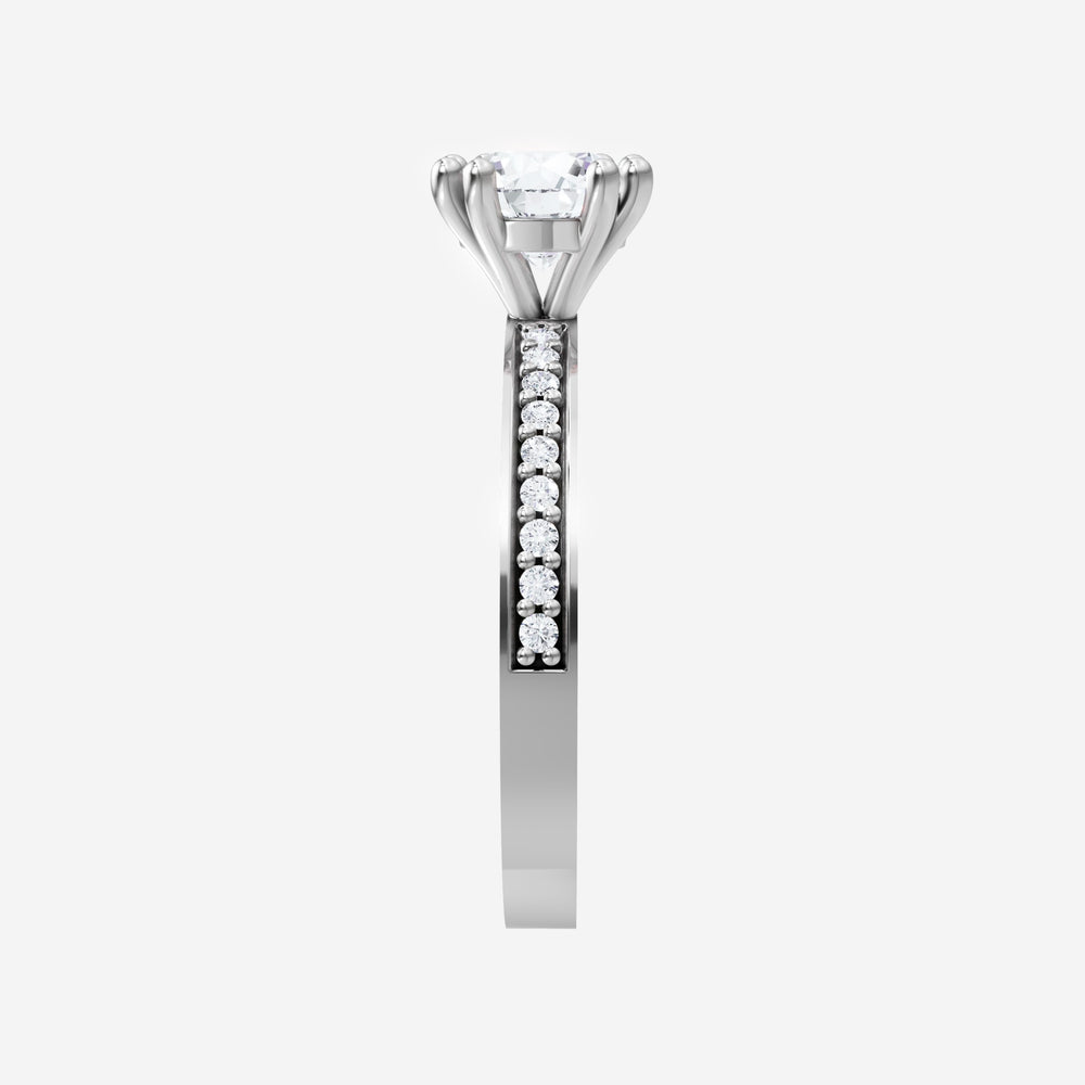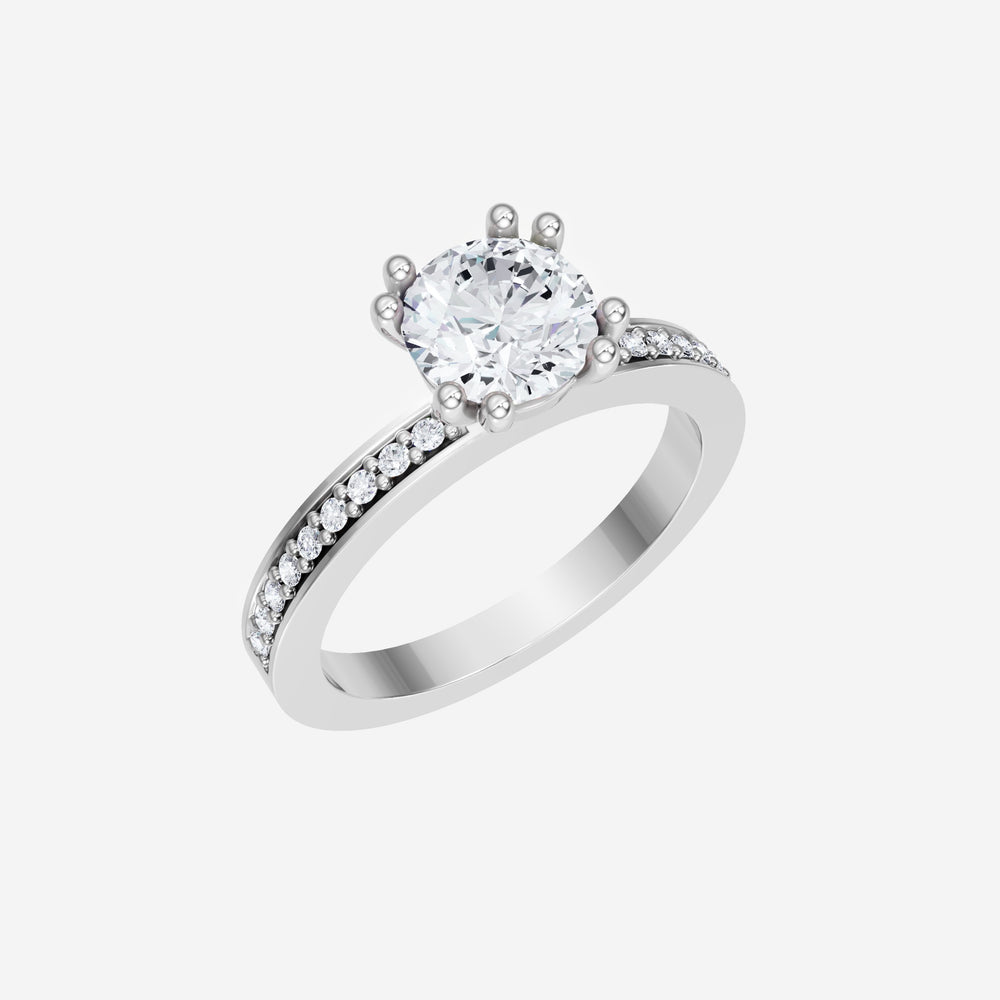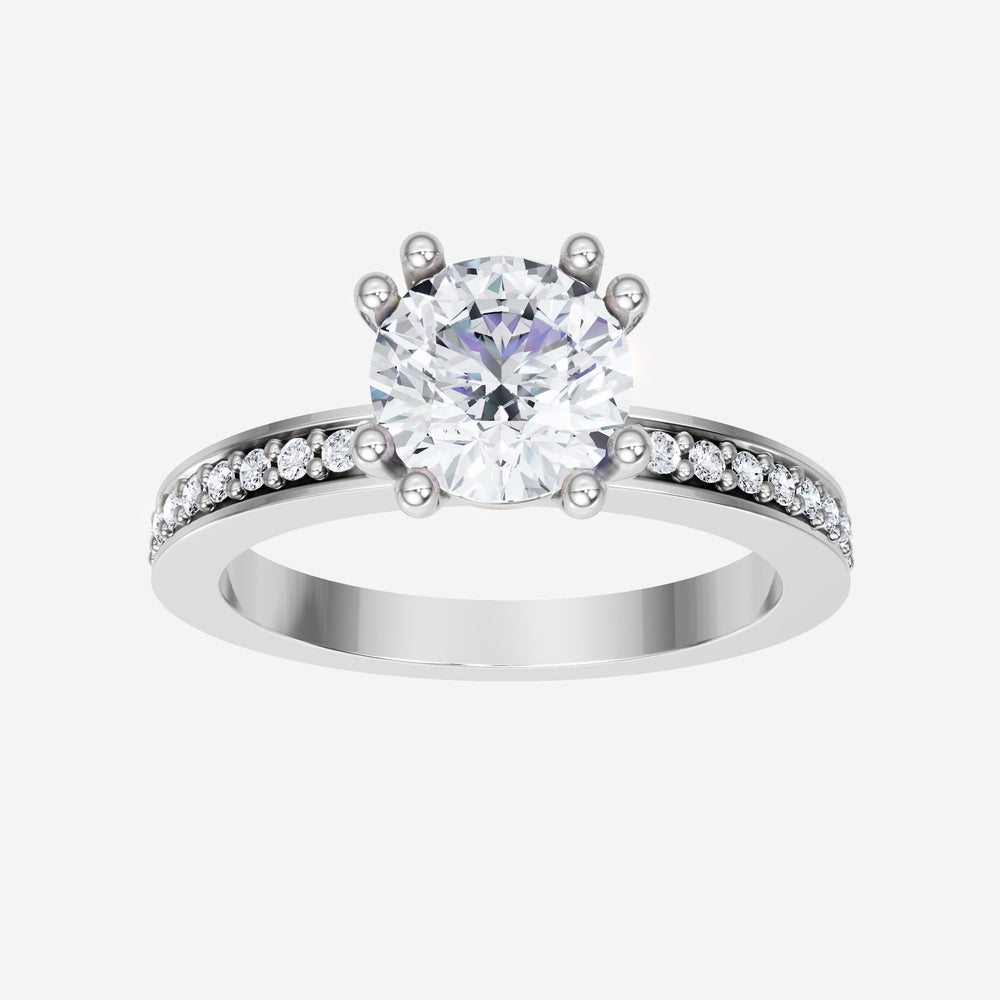 You’ve designed a ring that reflects lasting elegance and grace! Crafted from 14K White Gold, this exquisite Round lab-grown diamond is the centerpiece of this unique design. This Single Pave Shank with a 4 Prong Split Prong head showcases the brilliance of the Round diamond, creating a timeless look. A perfect choice to celebrate love, commitment, and everything in between.