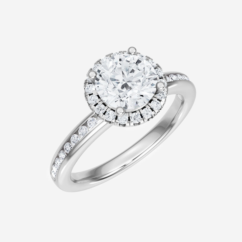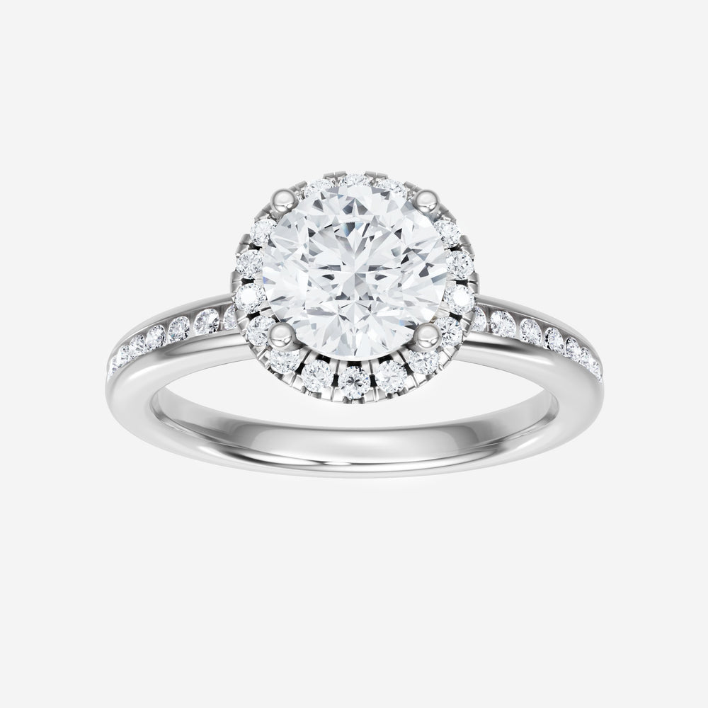 You’ve designed a ring that reflects lasting elegance and grace! Crafted from 14K White Gold, this exquisite Round lab-grown diamond is the centerpiece of this unique design. This Channel Set Shank with a Micro Halo head showcases the brilliance of the Round diamond, creating a timeless look. It's a piece of elegance and beauty, perfect for marking life's most beautiful occasions.