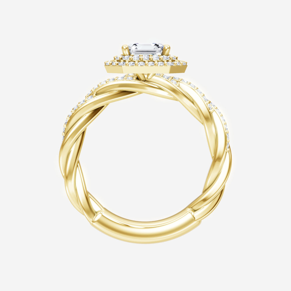 You’ve designed a ring that reflects lasting elegance and grace! Crafted from 14K Yellow Gold, this exquisite Asscher lab-grown diamond is the centerpiece of this unique design. This Rope Diamond Shank with a Double Halo head showcases the brilliance of the Asscher diamond, creating a timeless look. Whether as a gift or a personal treasure, this ring will forever symbolize the most meaningful moments in life.