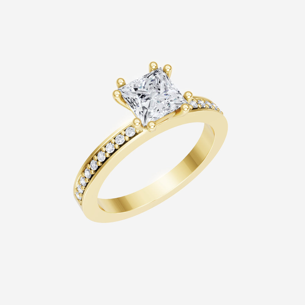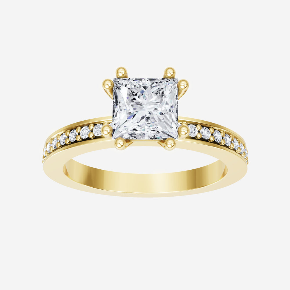 You’ve designed a ring that reflects lasting elegance and grace! Crafted from 14K Yellow Gold, this exquisite Princess lab-grown diamond is the centerpiece of this unique design. This Single Pave Shank with a 4 Prong Split Prong head showcases the brilliance of the Princess diamond, creating a timeless look. This stunning ring makes the perfect symbol of everlasting love and devotion.