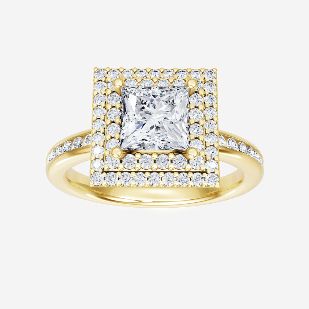 You’ve designed a ring that reflects lasting elegance and grace! Crafted from 14K Yellow Gold, this exquisite Princess lab-grown diamond is the centerpiece of this unique design. This Channel Set Shank with a Double Halo head showcases the brilliance of the Princess diamond, creating a timeless look. A perfect choice to celebrate love, commitment, and everything in between.