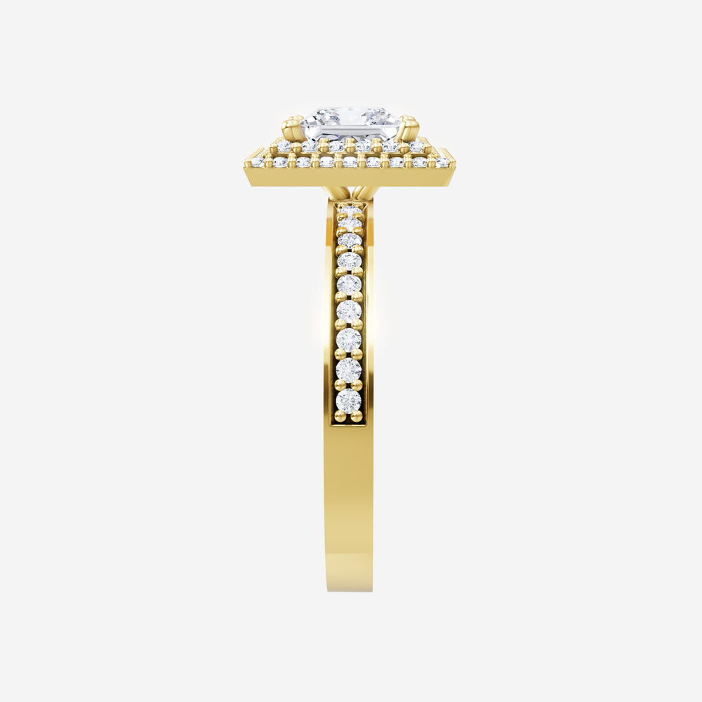 You’ve designed a ring that reflects lasting elegance and grace! Crafted from 14K Yellow Gold, this exquisite Princess lab-grown diamond is the centerpiece of this unique design. This Single Pave Shank with a Double Halo head showcases the brilliance of the Princess diamond, creating a timeless look. With this ring, celebrate every moment of joy, success, and love.