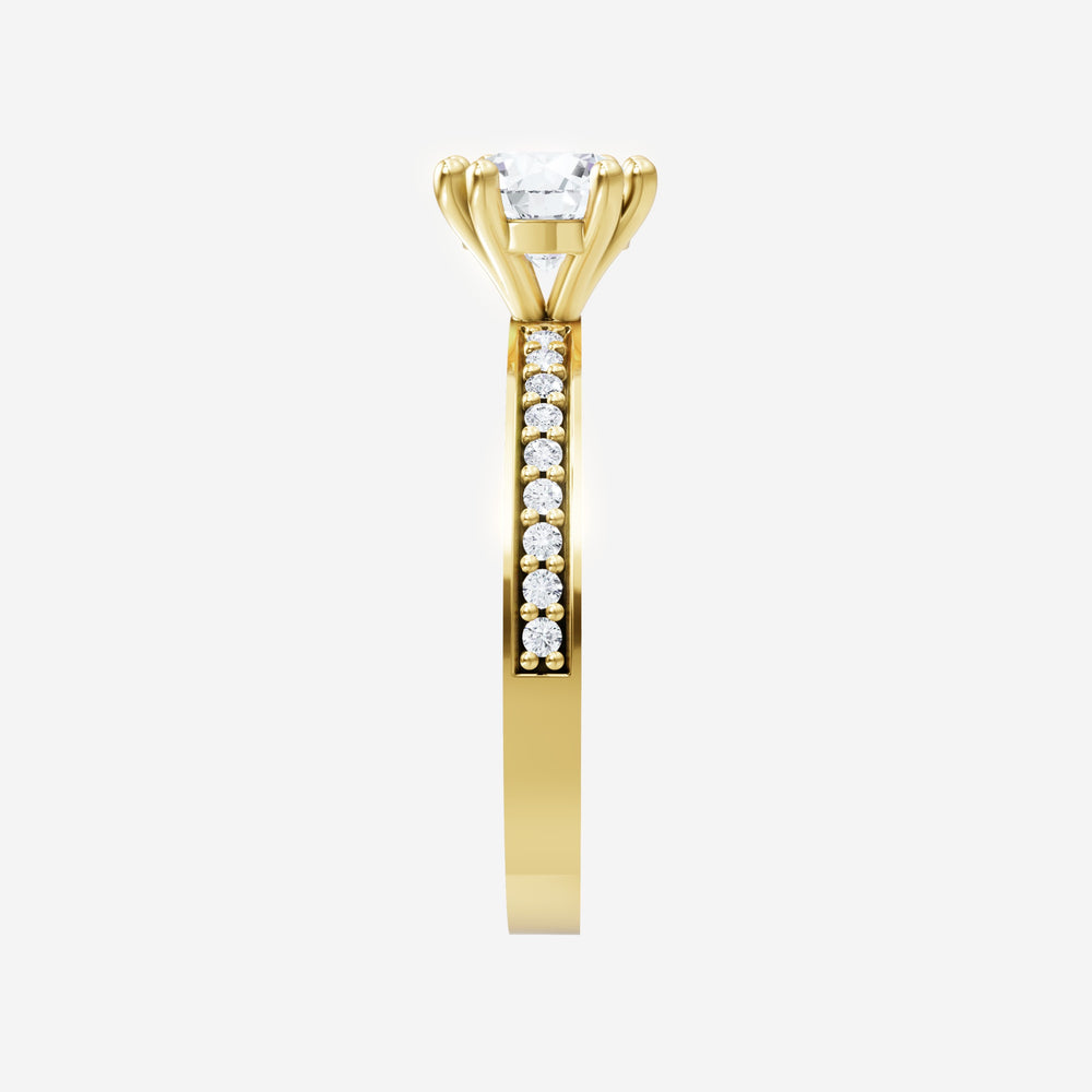 You’ve designed a ring that reflects lasting elegance and grace! Crafted from 14K Yellow Gold, this exquisite Round lab-grown diamond is the centerpiece of this unique design. This Single Pave Shank with a 4 Prong Split Prong head showcases the brilliance of the Round diamond, creating a timeless look. This stunning ring makes the perfect symbol of everlasting love and devotion.