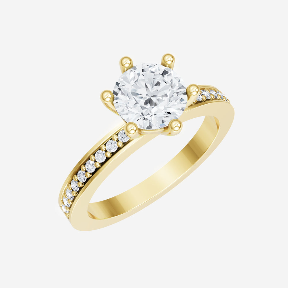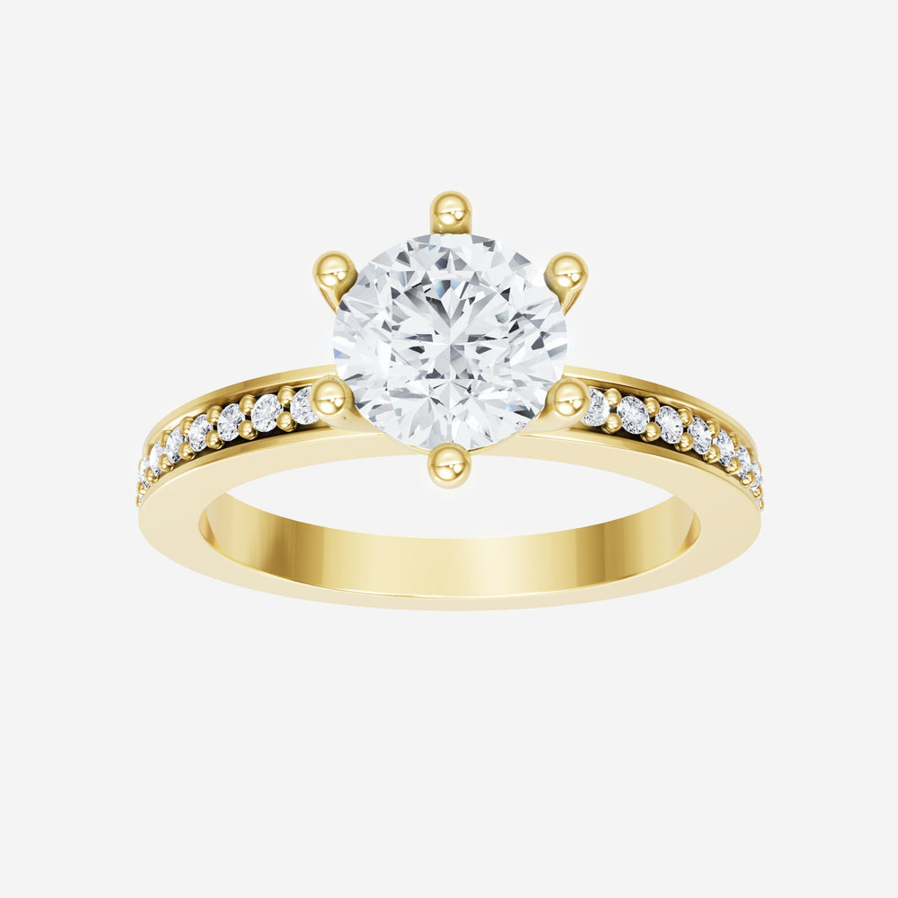 You’ve designed a ring that reflects lasting elegance and grace! Crafted from 14K Yellow Gold, this exquisite Round lab-grown diamond is the centerpiece of this unique design. This Single Pave Shank with a 6 Prong Head head showcases the brilliance of the Round diamond, creating a timeless look. This elegant piece is the perfect symbol of love, strength, and timeless beauty.