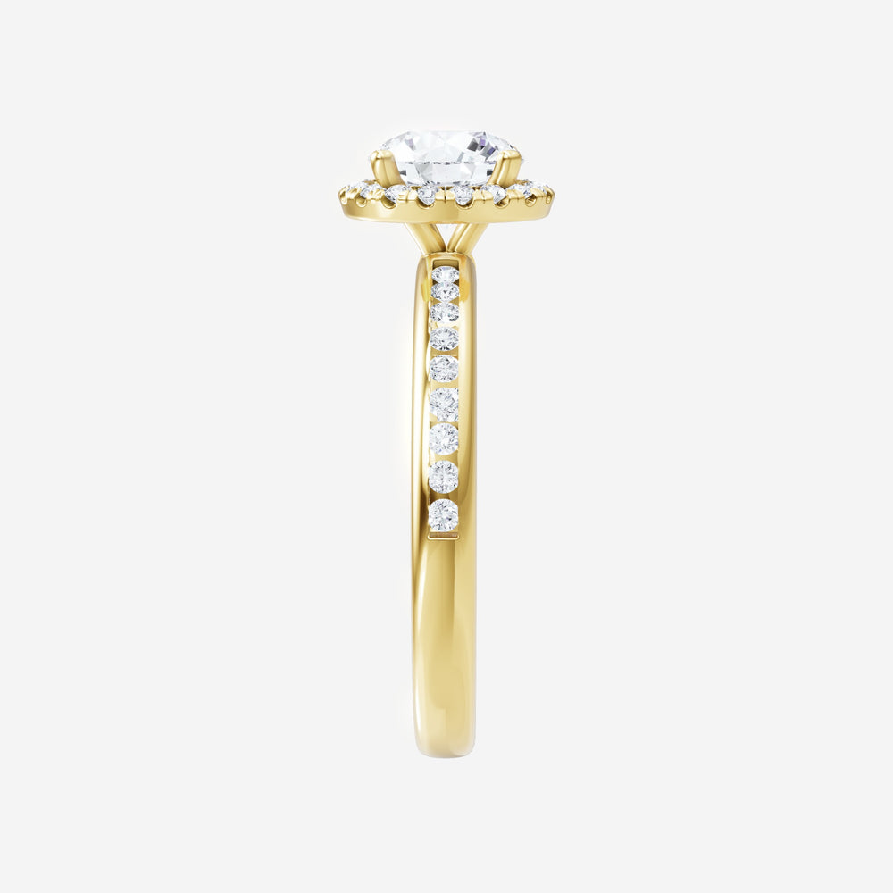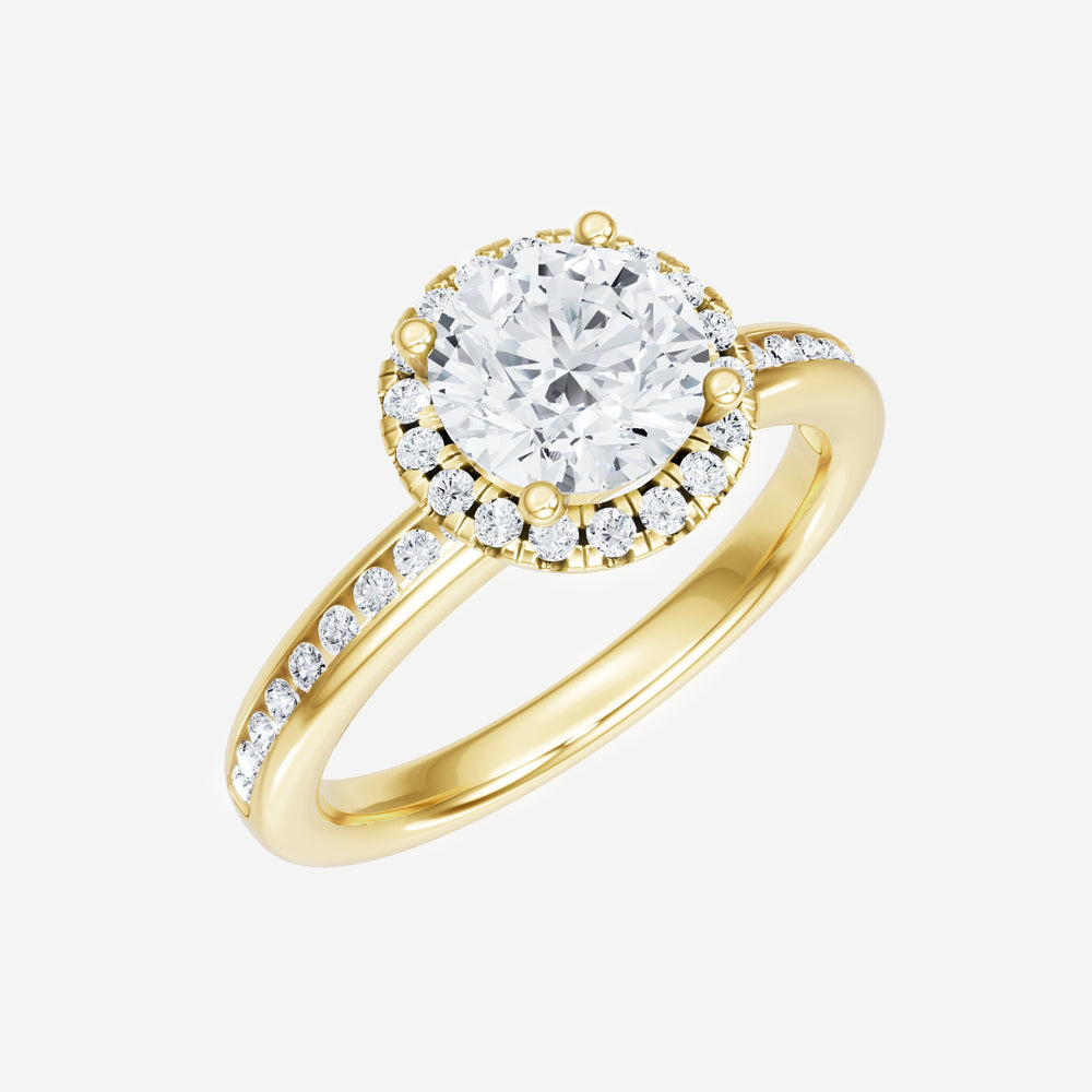 You’ve designed a ring that reflects lasting elegance and grace! Crafted from 14K Yellow Gold, this exquisite Round lab-grown diamond is the centerpiece of this unique design. This Channel Set Shank with a Micro Halo head showcases the brilliance of the Round diamond, creating a timeless look. This stunning ring makes the perfect symbol of everlasting love and devotion.