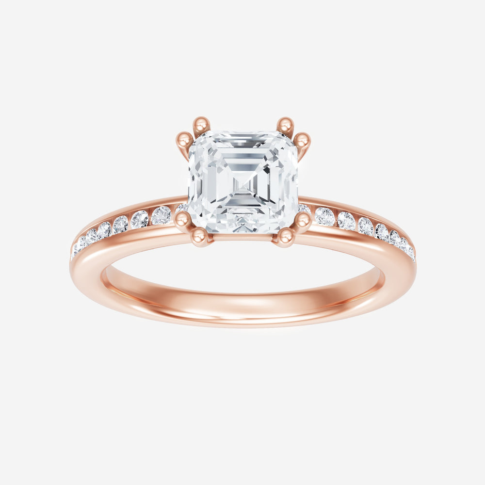 You’ve designed a ring that reflects lasting elegance and grace! Crafted from 18K Rose Gold, this exquisite Asscher lab-grown diamond is the centerpiece of this unique design. This Channel Set Shank with a 4 Prong Split Prong head showcases the brilliance of the Asscher diamond, creating a timeless look. Whether as a gift or a personal treasure, this ring will forever symbolize the most meaningful moments in life.