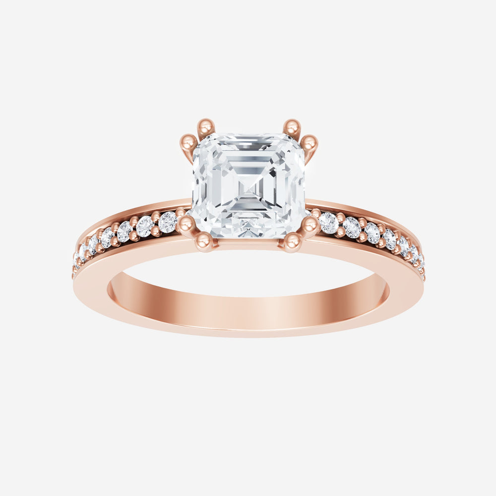 You’ve designed a ring that reflects lasting elegance and grace! Crafted from 18K Rose Gold, this exquisite Asscher lab-grown diamond is the centerpiece of this unique design. This Single Pave Shank with a 4 Prong Split Prong head showcases the brilliance of the Asscher diamond, creating a timeless look. Whether as a gift or a personal treasure, this ring will forever symbolize the most meaningful moments in life.